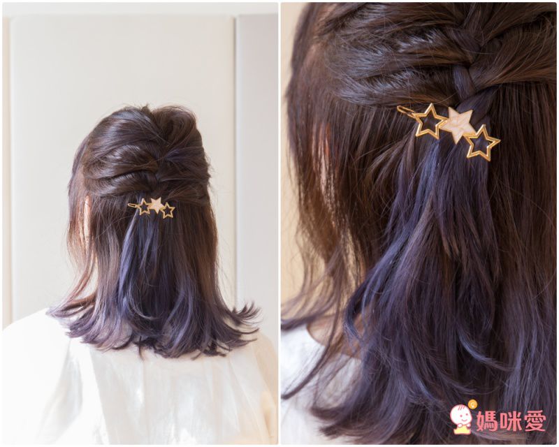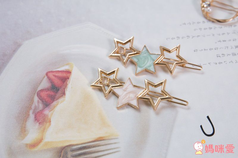星星別在瀏海旁邊特別好看,是媽咪跟寶貝都能共用的款式喲