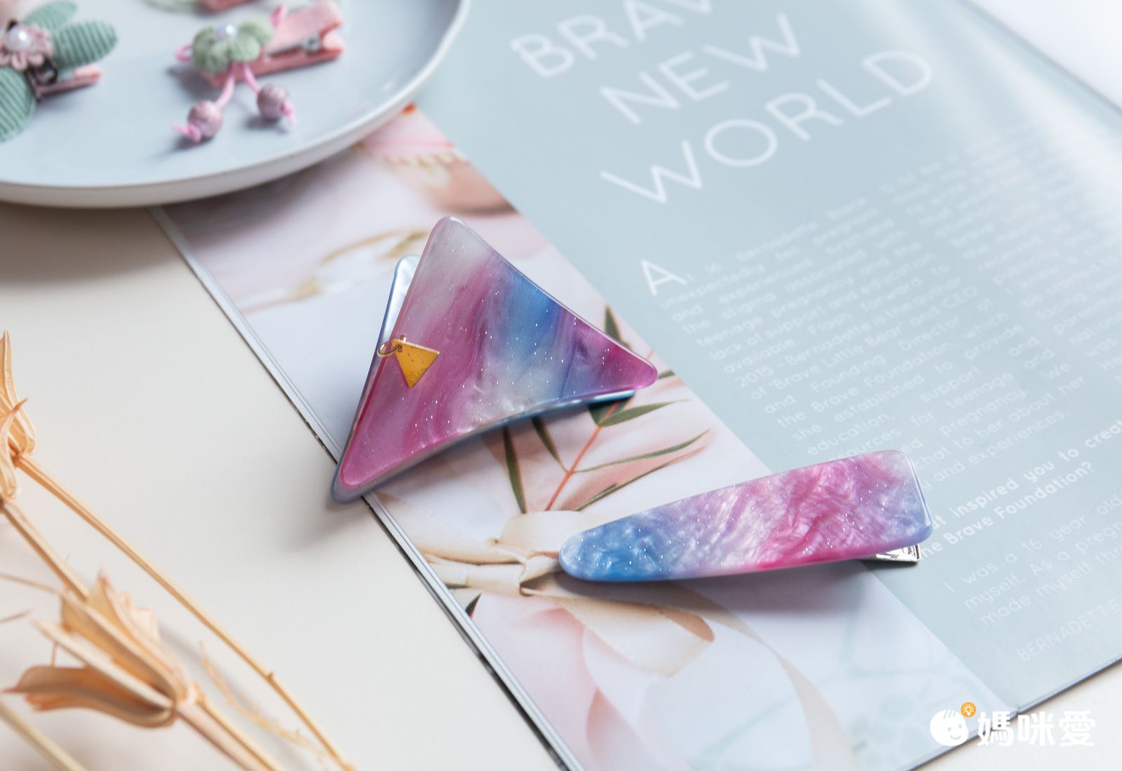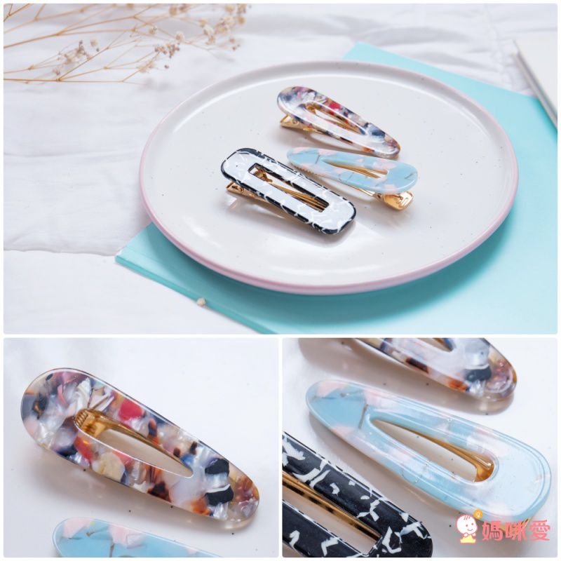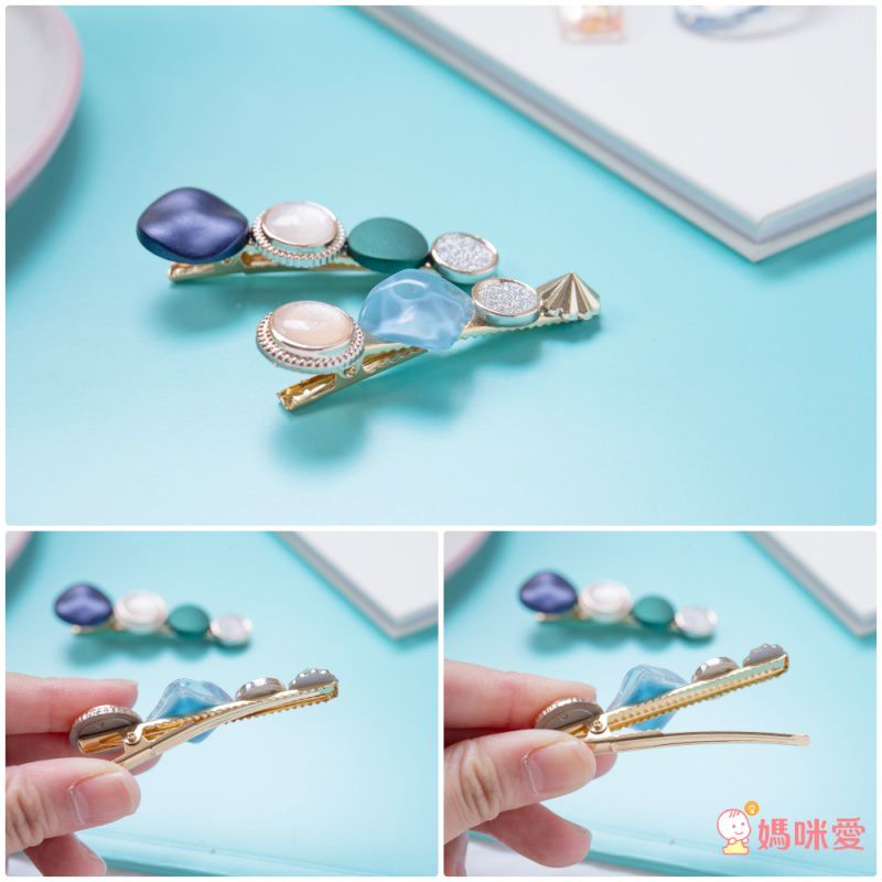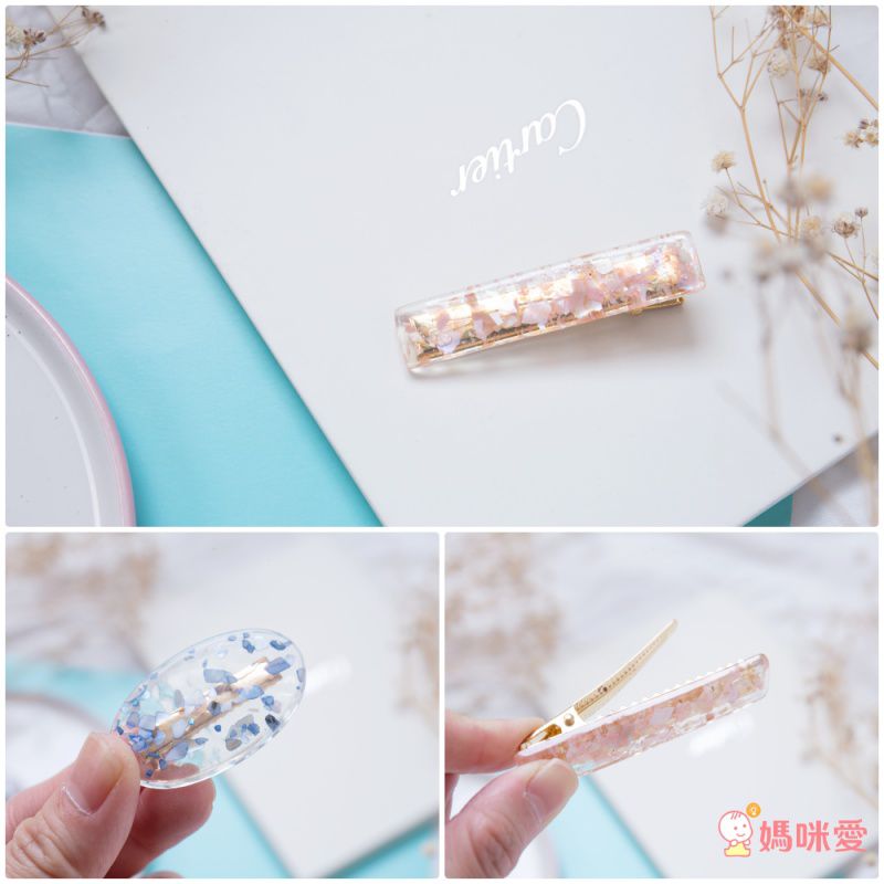 喜歡雲母流光系列的媽咪,這款就是為你而開的~漂亮的礦石紋路質感很好,覺得瀏海擾視線就直接用它夾起來吧!清爽又美觀:D