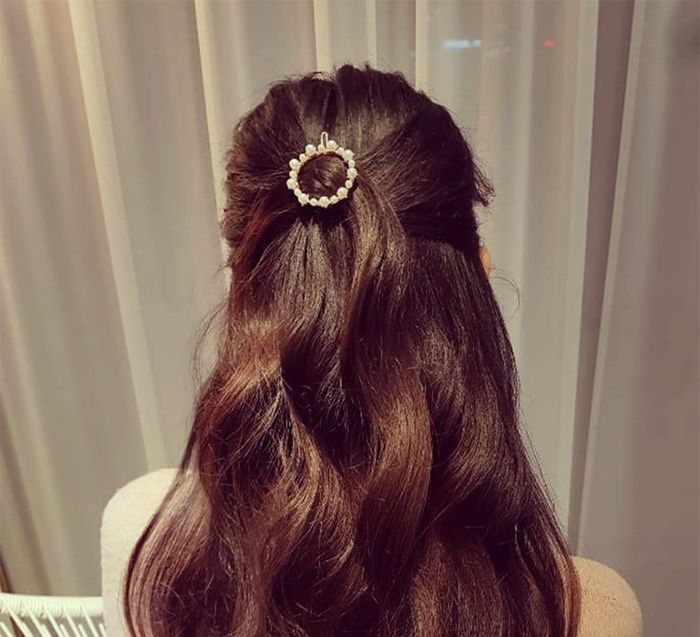 金色跟珍珠真的很搭,簡單好上手的扣夾往腦後一別,就是令人注目的日韓系髮型
