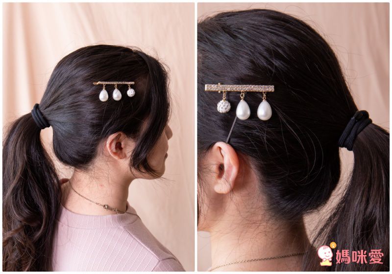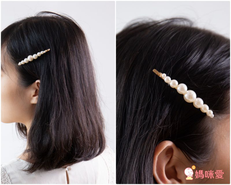 大大的珍珠髮夾別在髮側,特別搶眼跟有氣質,很適合不想花心思的快速造型