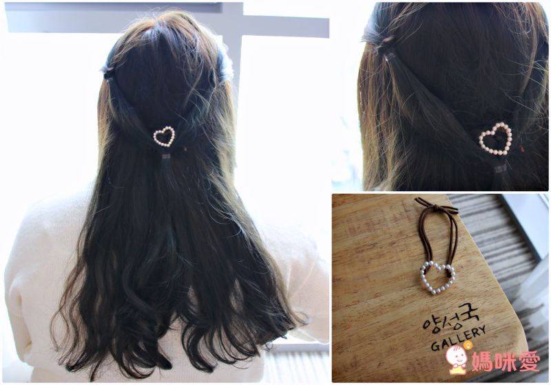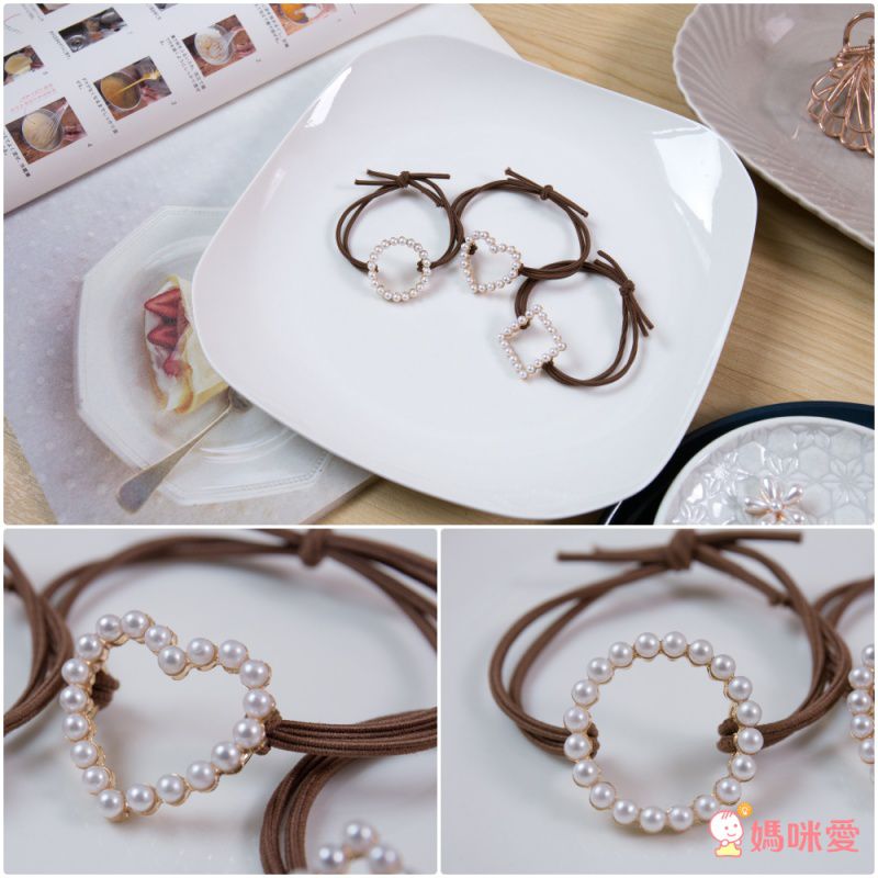 細緻的珍珠排成鏤空的心型和圓形,簡單又大方,綁起來非常好看~平常沒事也能套在手上,想綁頭髮隨時能綁起來