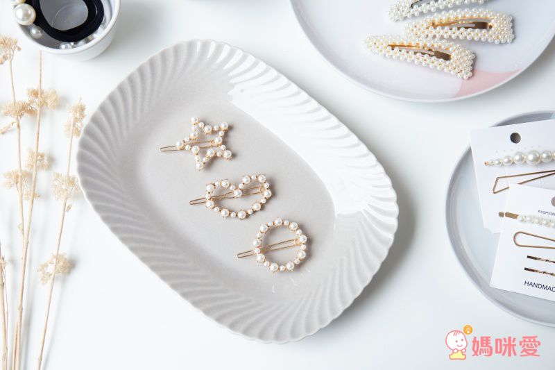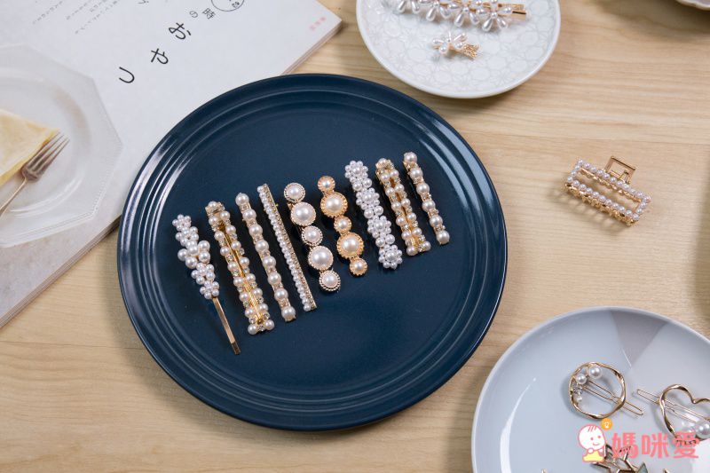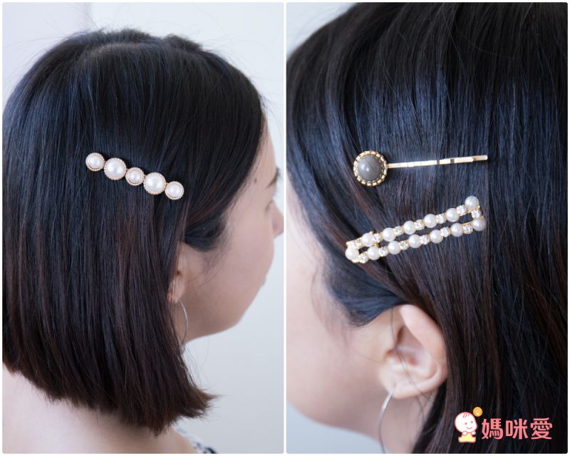 喜歡比較小的髮夾,可以參考珍珠X金屬款,一組有3-4隻髮夾(依款式而定),可以全部夾在同一側,或者鑲嵌在各種不同位置,玩出你的隨性風格~