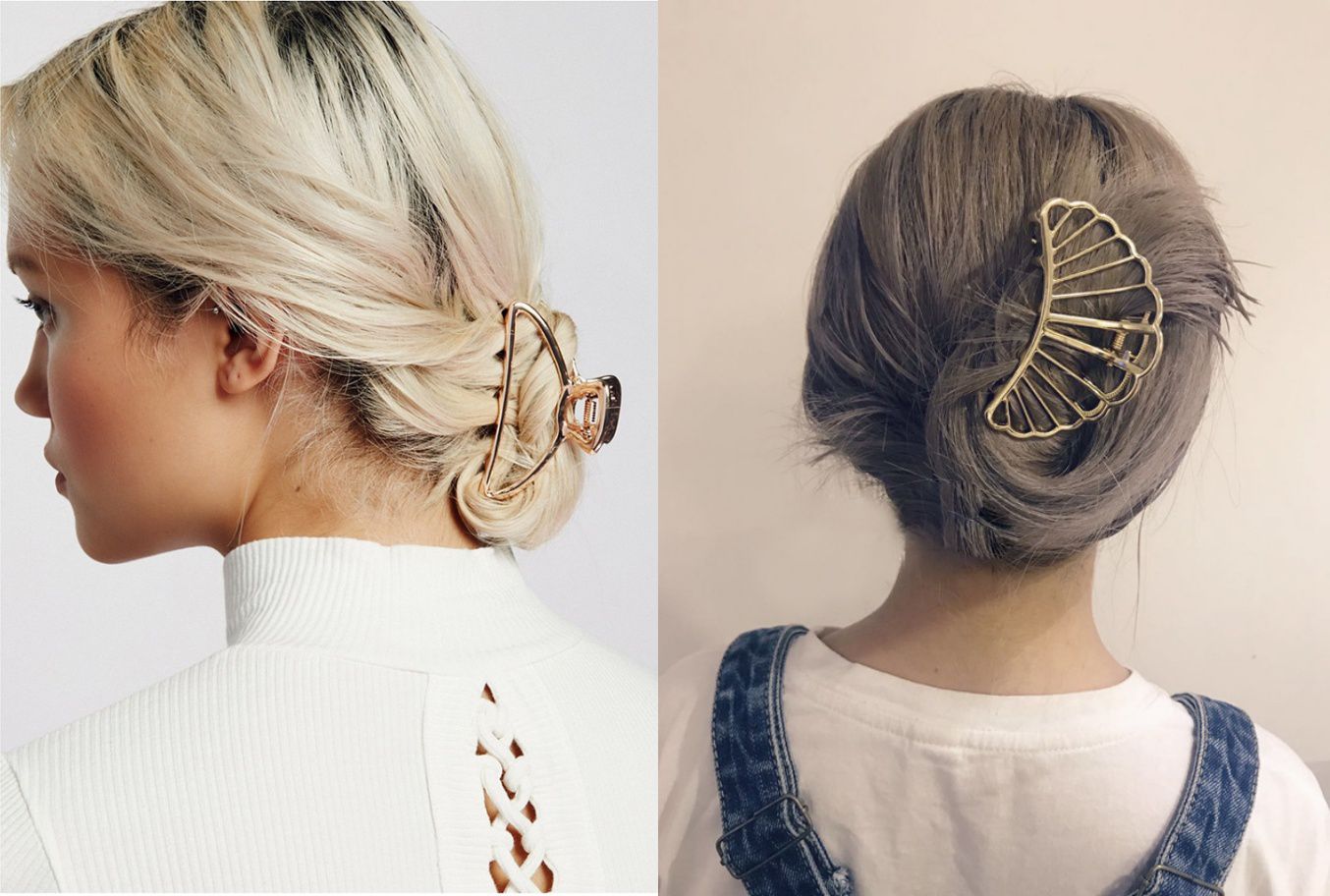 如果妳喜歡用一個髮夾將所有頭髮打理好,那這款必推!鏤空的金屬夾閃著淡淡的金色光輝,像鯊魚夾那樣一把夾起來就非常好看,帶點貴婦感又不失率性~
