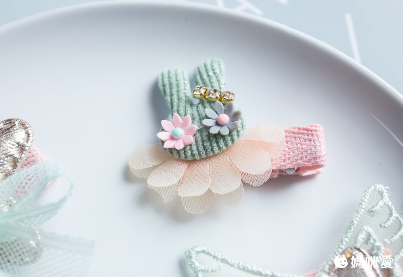 小兔細心呵護著珍珠花,寶貝也要好好珍惜髮夾啊