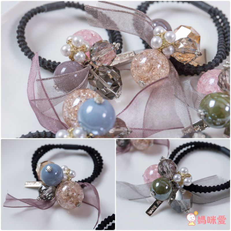 晶石款是編媽的命定款,一看到就被華麗的碎晶+彩色珍珠吸引,即使不綁頭髮,當手環也美呆啊!