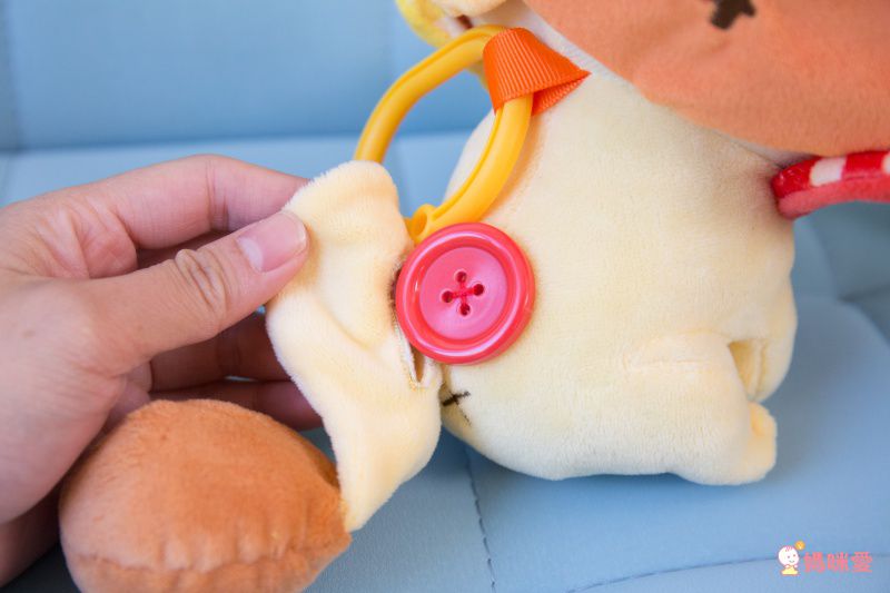 小獅子的尾巴有小鈴鐺而且可以給小朋友練習扣扣子