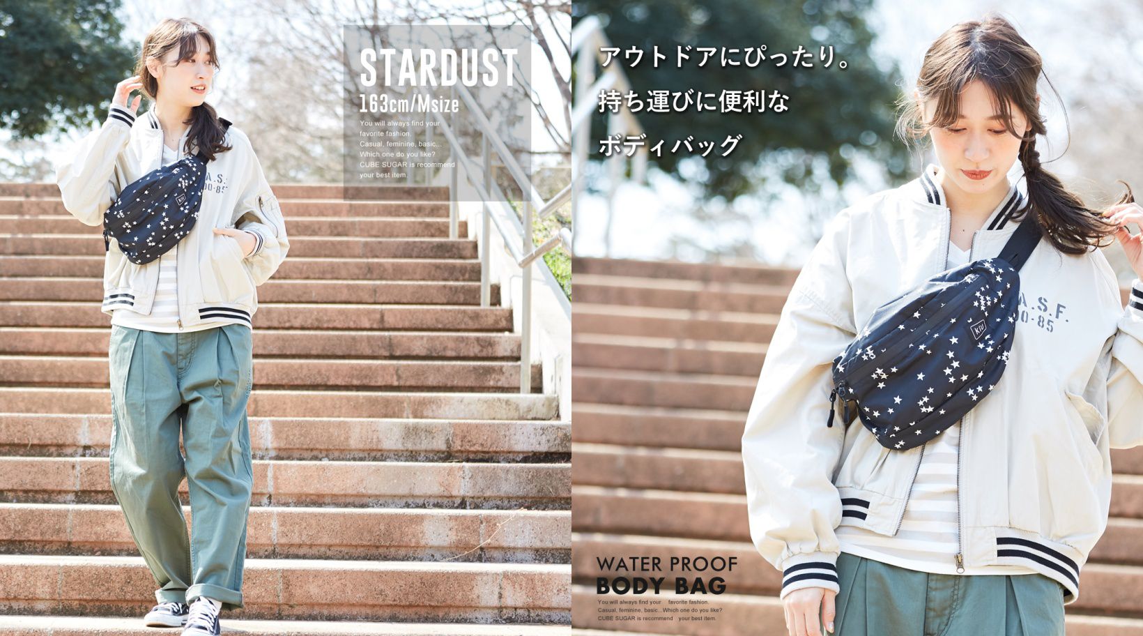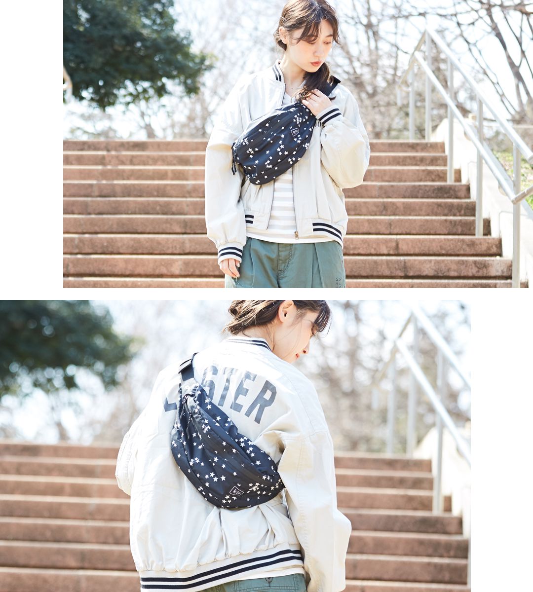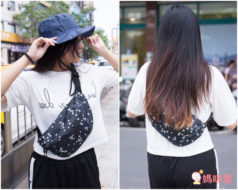 黑底星星造型充滿年輕感,很像假日隨性出遊的大學生,前背後背都好看