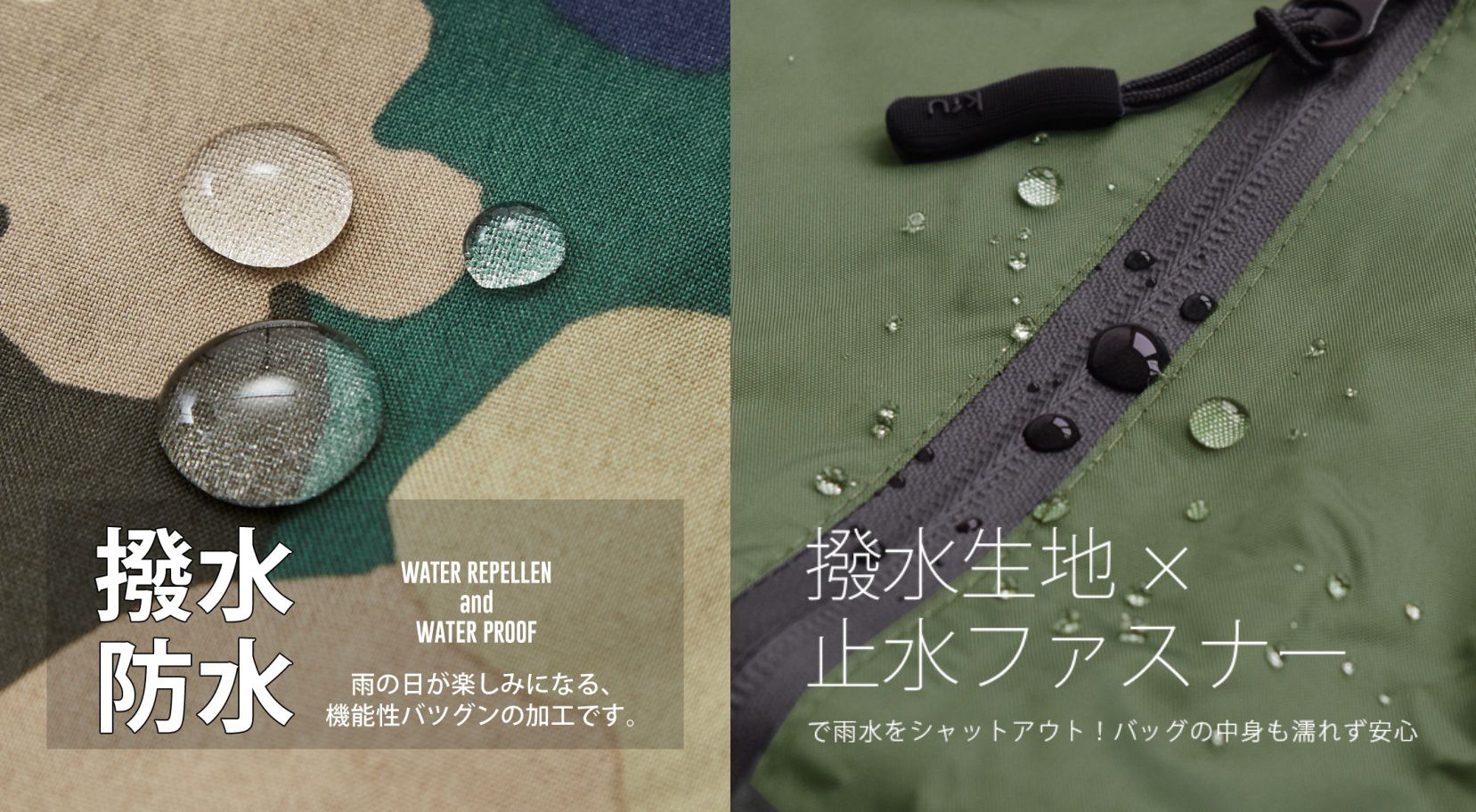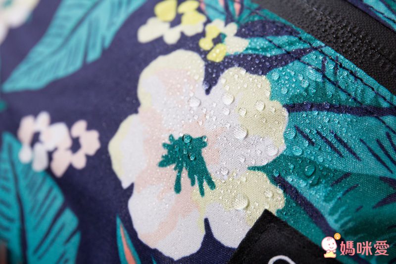 布料表面有撥水加工處理,下雨也老神在在,媽咪可能會想那拉鍊接縫怎麼辦?大丈夫~拉鍊也是有防水處理的哦!看看這晶瑩透亮又被拒於門外的水珠~