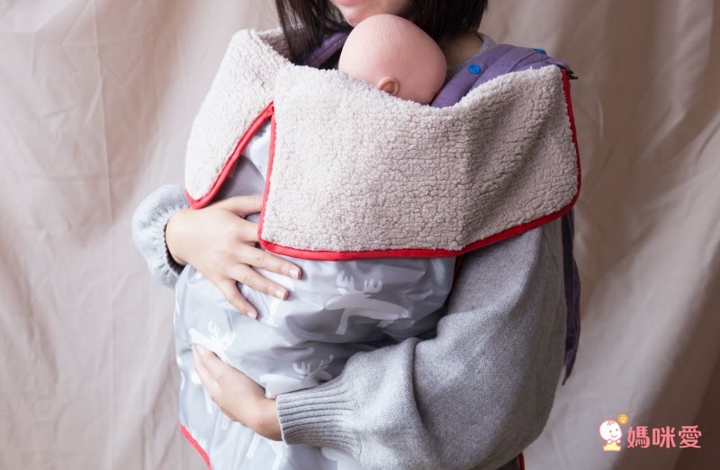 這款也能當背巾保暖罩~畢竟冬天只用背巾還是覺得冷颼颼,寶寶都變相在前面幫我擋冷風了啦> < 雖然這款保暖度沒有第一款來得強,但對台灣冬天十幾二十度的天氣來說蠻適合的!