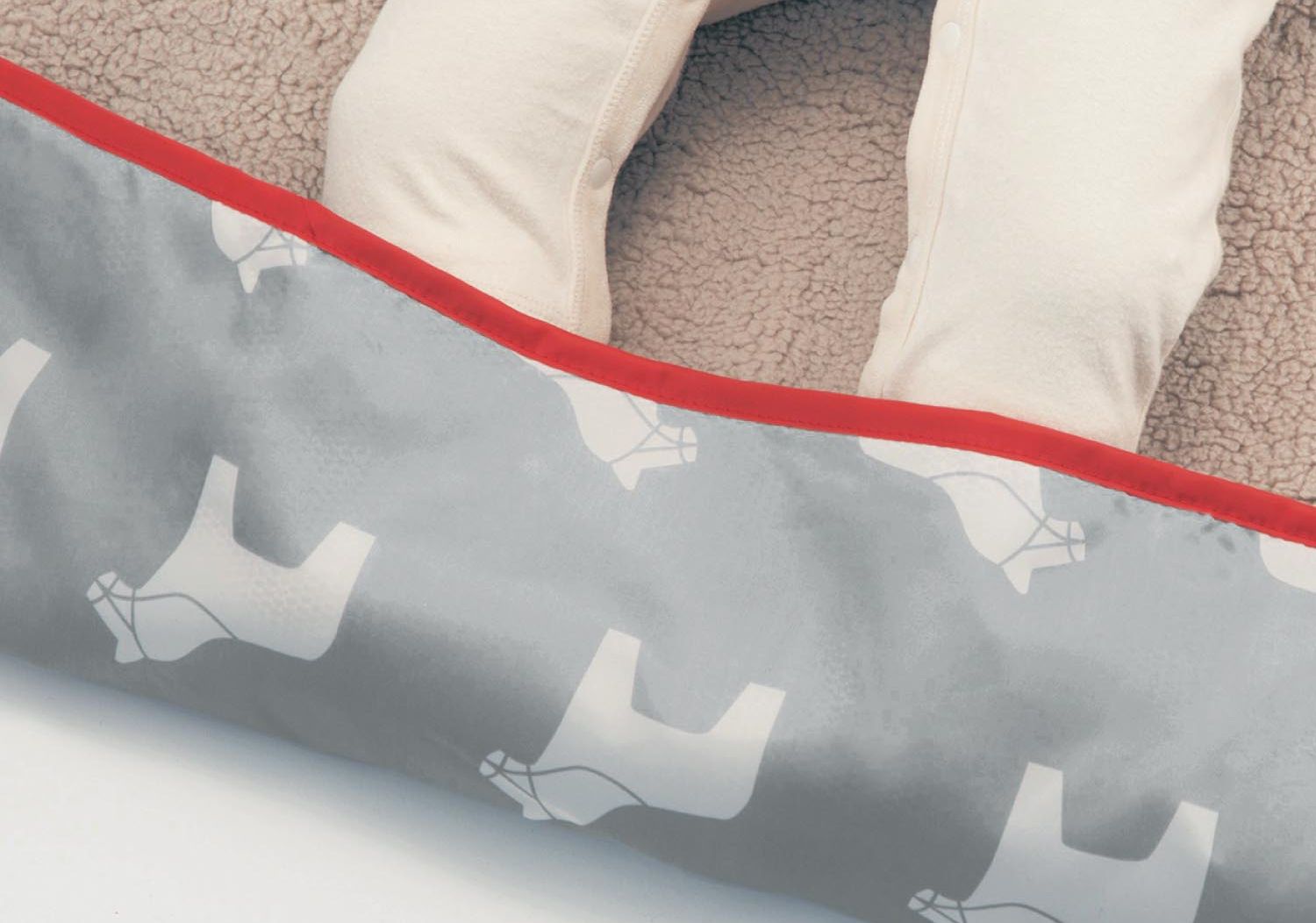 首先要介紹的,就是千趣會號稱最保暖的兩面用防撥水保暖推車毯,不僅裡外的花色都好看實搭,給媽咪保暖手的口袋也同時做到雙面喔~雖然價格相較起來稍高了一些,但是一看到填充物有 高比例的羽絨羽毛 ,就知道這款保暖效果肯定很、強、啊!如果過年有要帶孩子到寒冷地區、出國旅遊的話,這款一定挺得住!腳腳部分的收口加工也比以往更密合,更全方位防止冷風灌入!