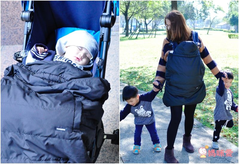 說到這,三寶媽就大力讚嘆推車保暖套的發明者!「這發明真的太貼心、太聰明了!」雙寶小的時候,每次三寶媽要帶雙寶出門,就要把雙寶五花大綁,然後他們穿得圓滾滾的躺在推車上,卻又覺得好像不夠,一定得再加個被毯才行。但有了推車保暖套就不一樣了,直接整個罩住推車,小寶自己就在裡頭睡翻了,我也不用怕寶寶著涼啦~~~