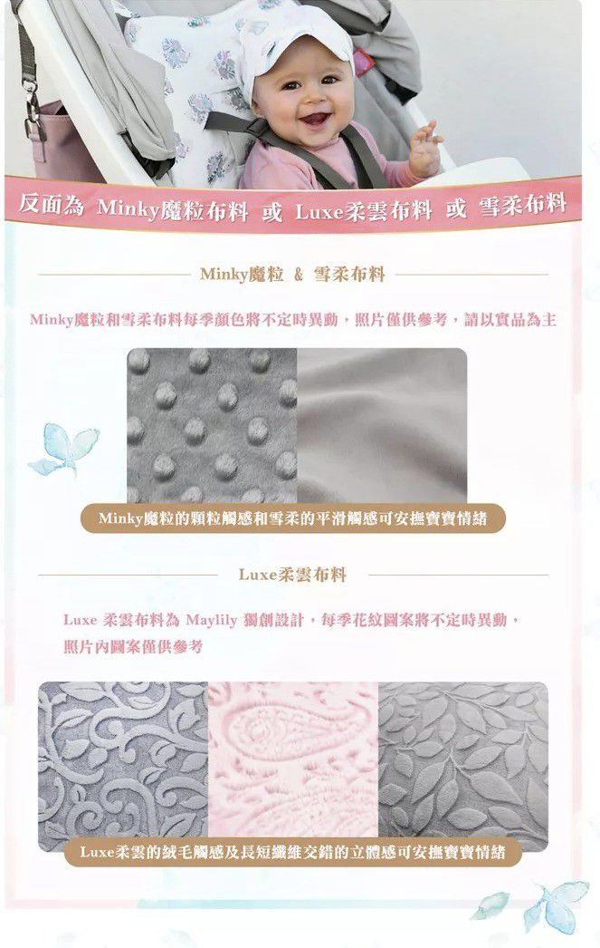 由於Maylily獨創設計的Luxe柔雲布料,原廠每季花紋圖案將不定時異動,實際產品花紋可能與商品照片有所不同,謝謝媽咪的包容~