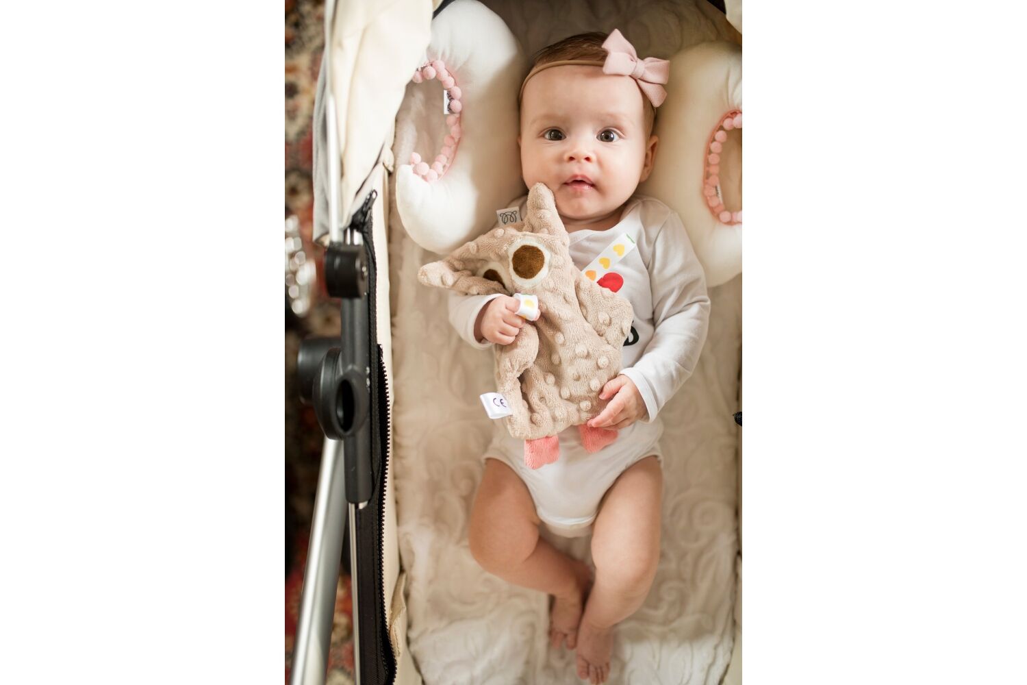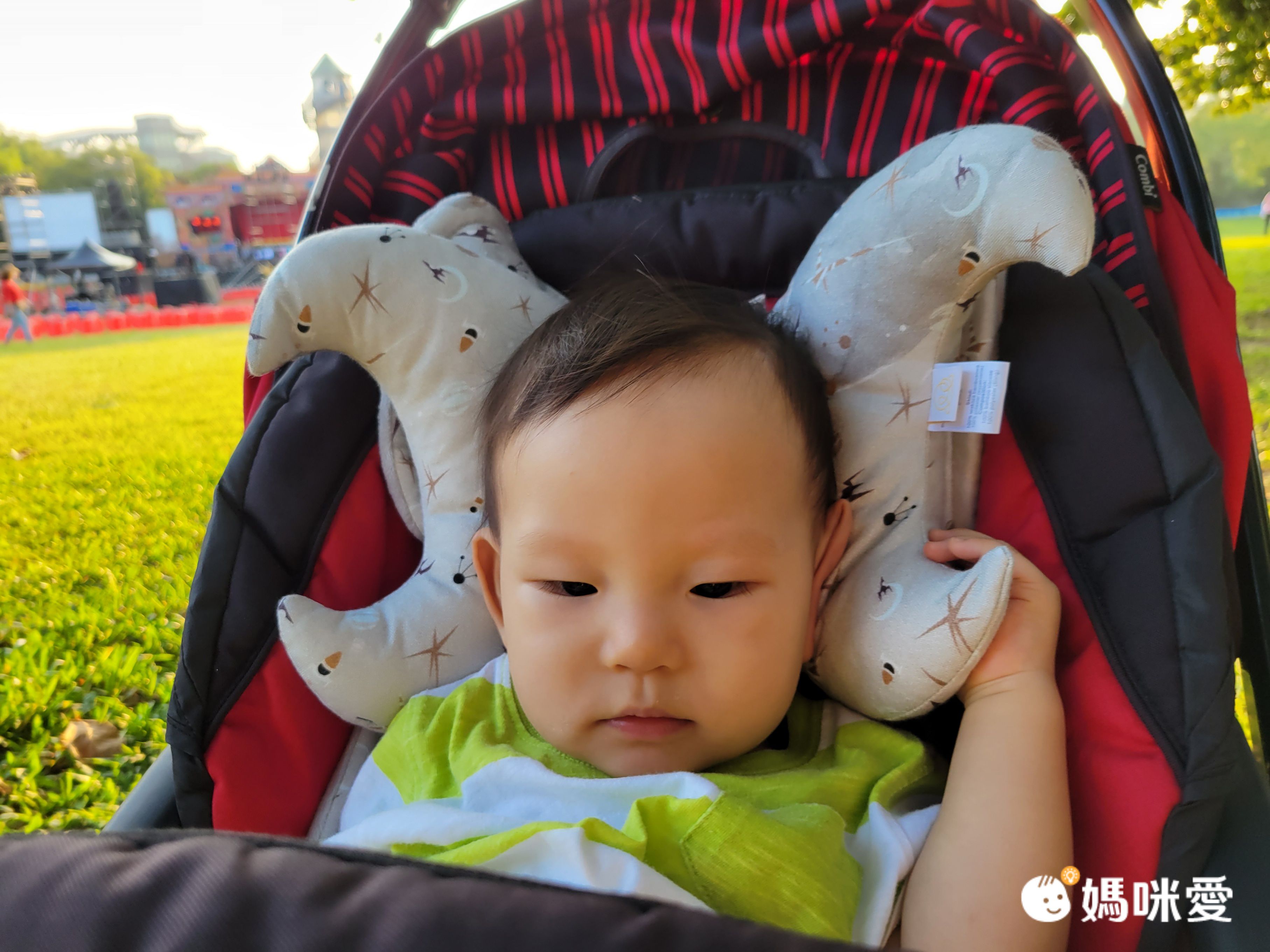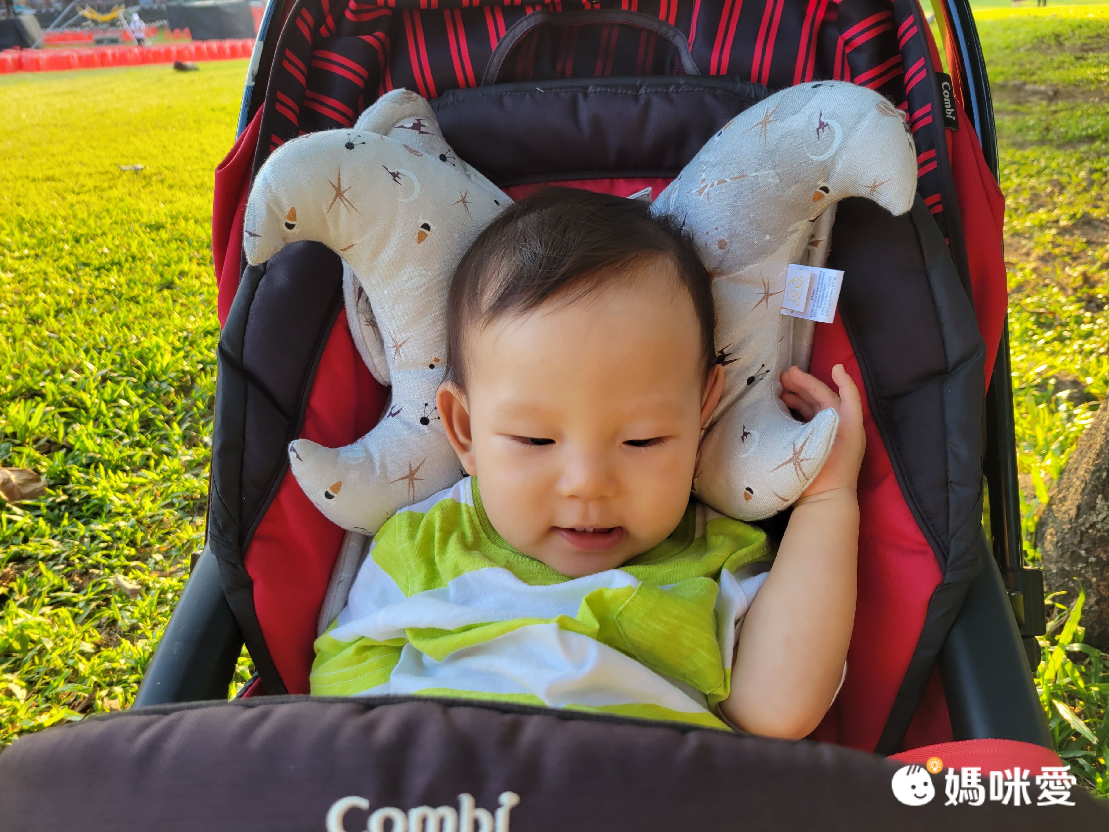 外出推推車,地面凹凸不平,為了讓寶貝頭部不受傷,防晃枕這時候就很好用!協助脖子支撐力!