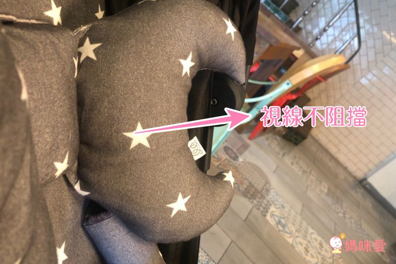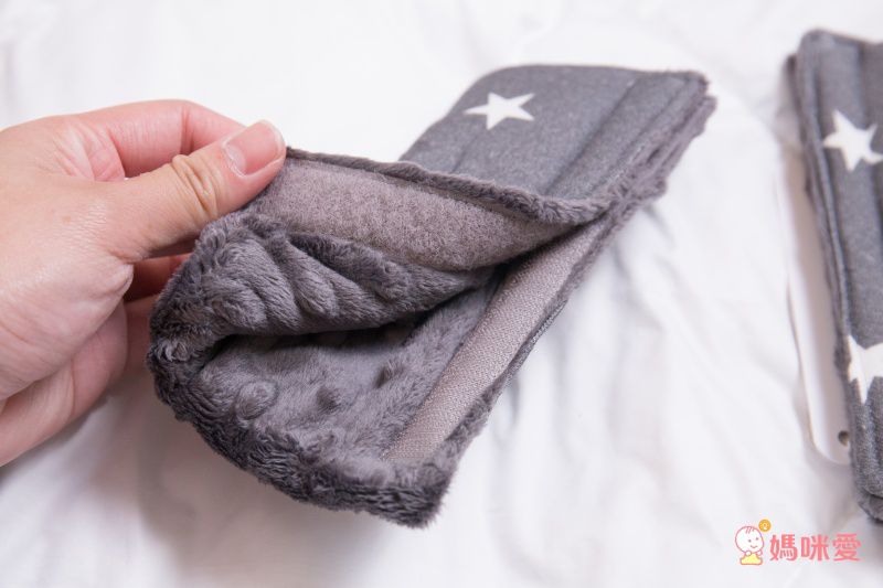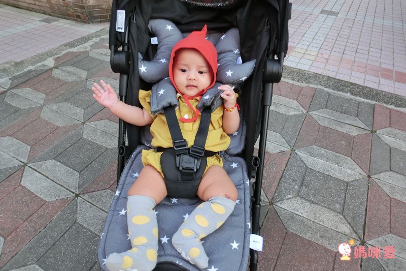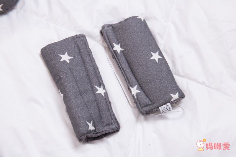 小孩肩膀那一塊比較不會悶熱,而且也可以使用在推車的安全帶上真的是非常方便!