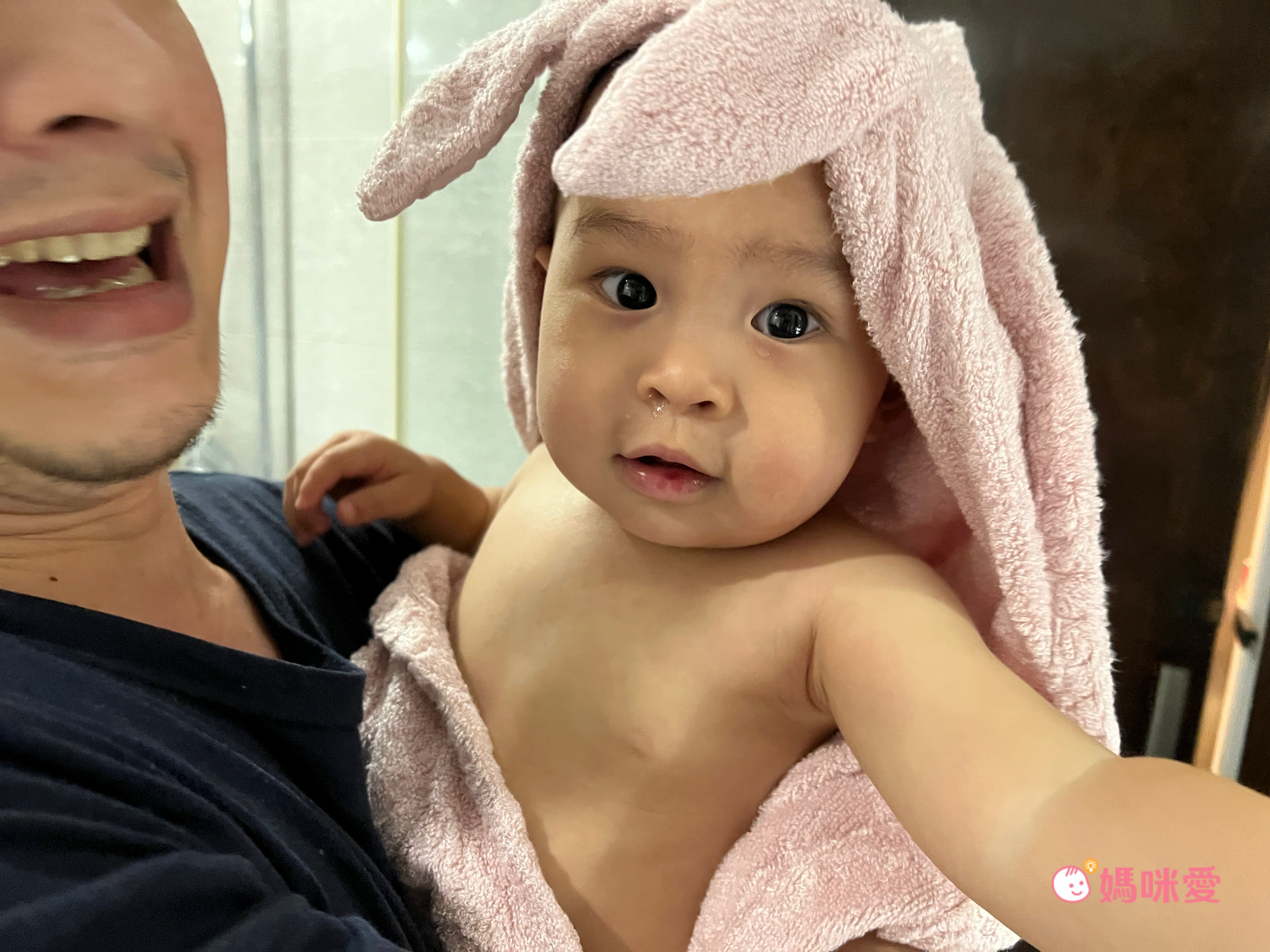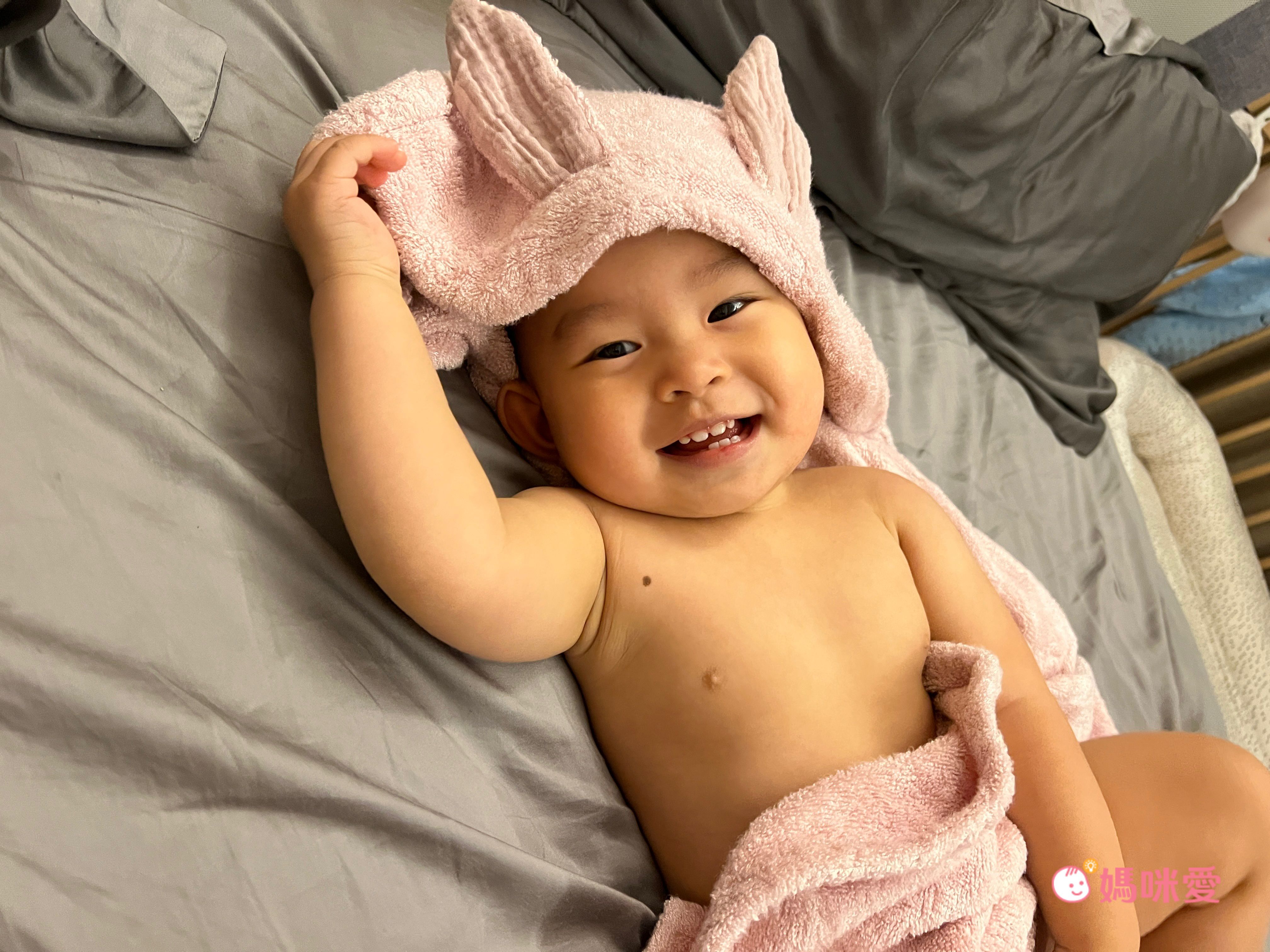 不怕著涼,竹纖維的材質也很細緻,Lucas的皮膚很容易過敏,兔兔連帽浴巾柔軟又厚實,很適合敏感肌寶寶~