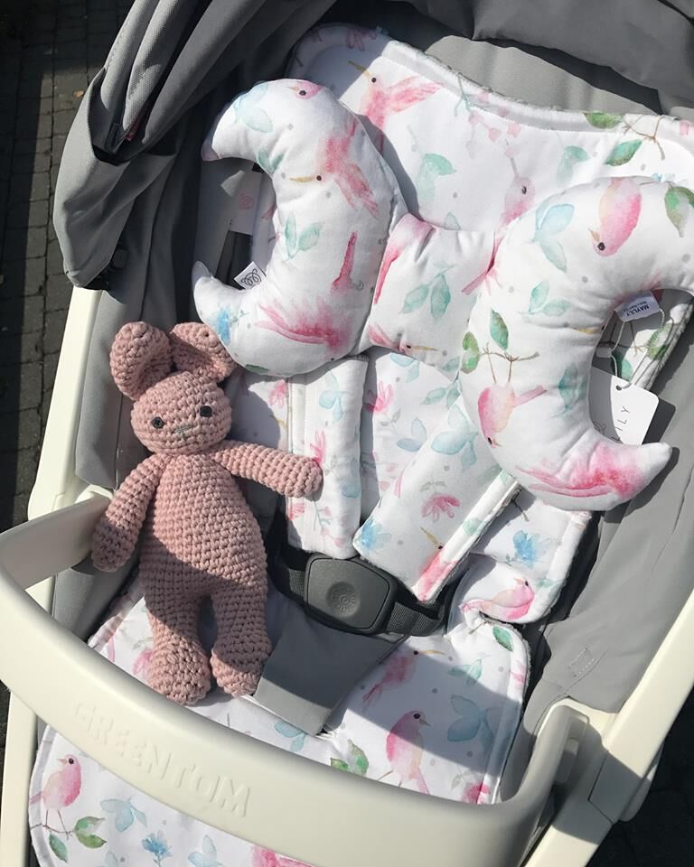 可以用在推車上、汽座上,通常汽座附的安全帶保護套都不會那麼舒服><