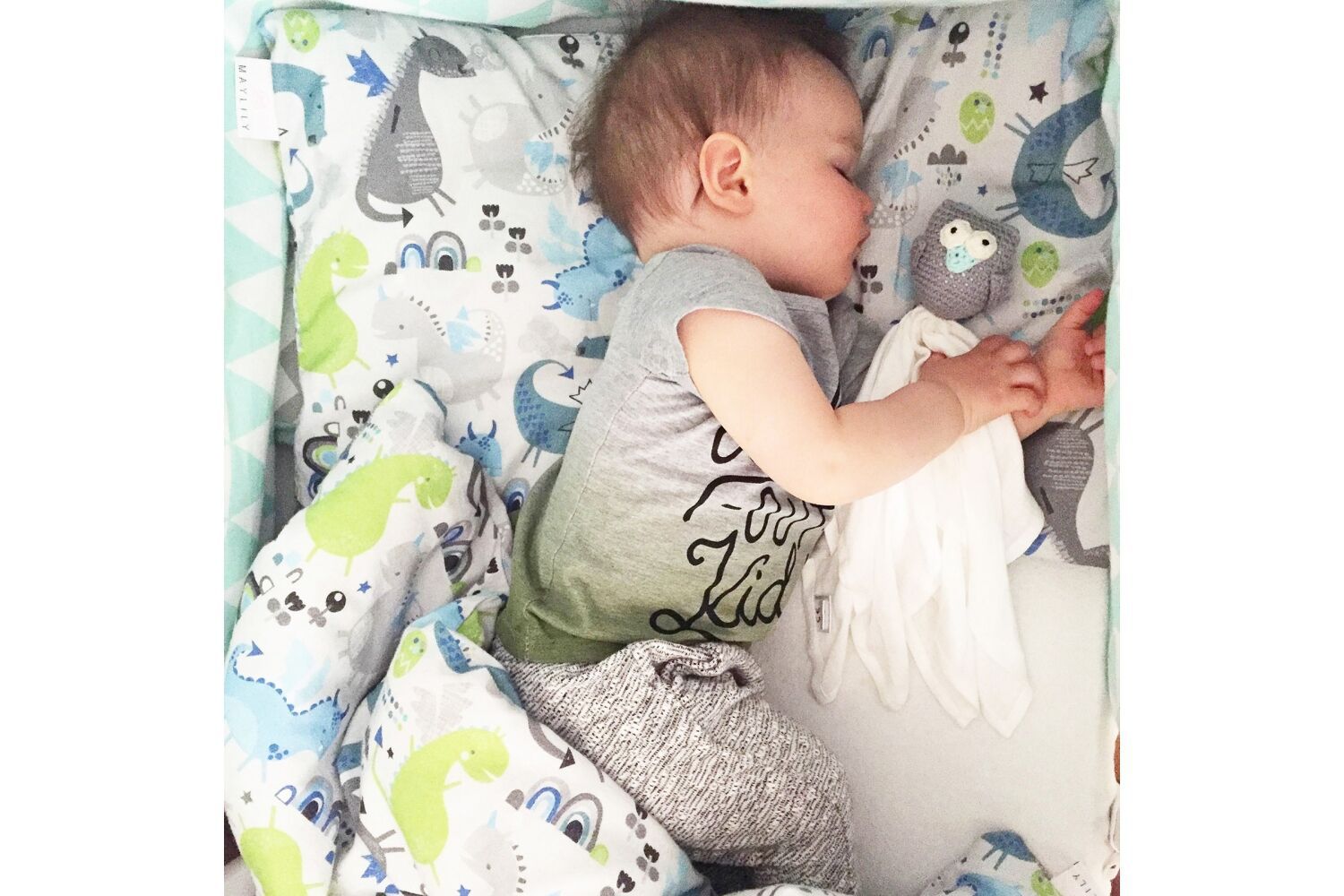 睡窩本身的材質是很親膚的涼感竹纖維布料~本身是火爐寶寶的Lucas意外睡得超香甜😍
