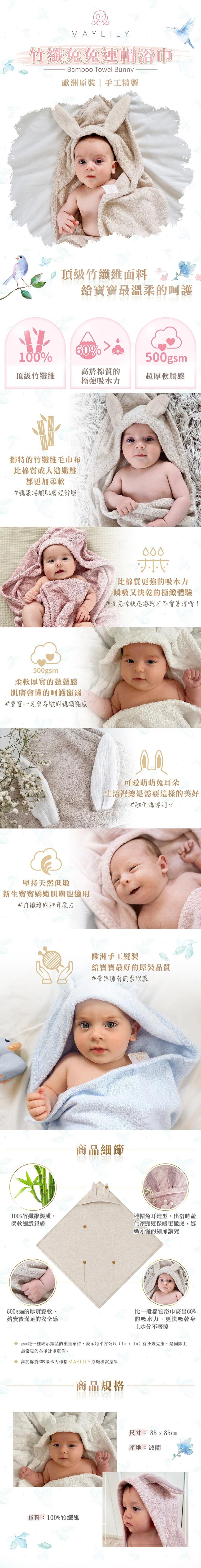 竹纖兔兔連帽浴巾完全打中媽媽的心啊!!!可愛兔兔的連帽造型真的很萌~