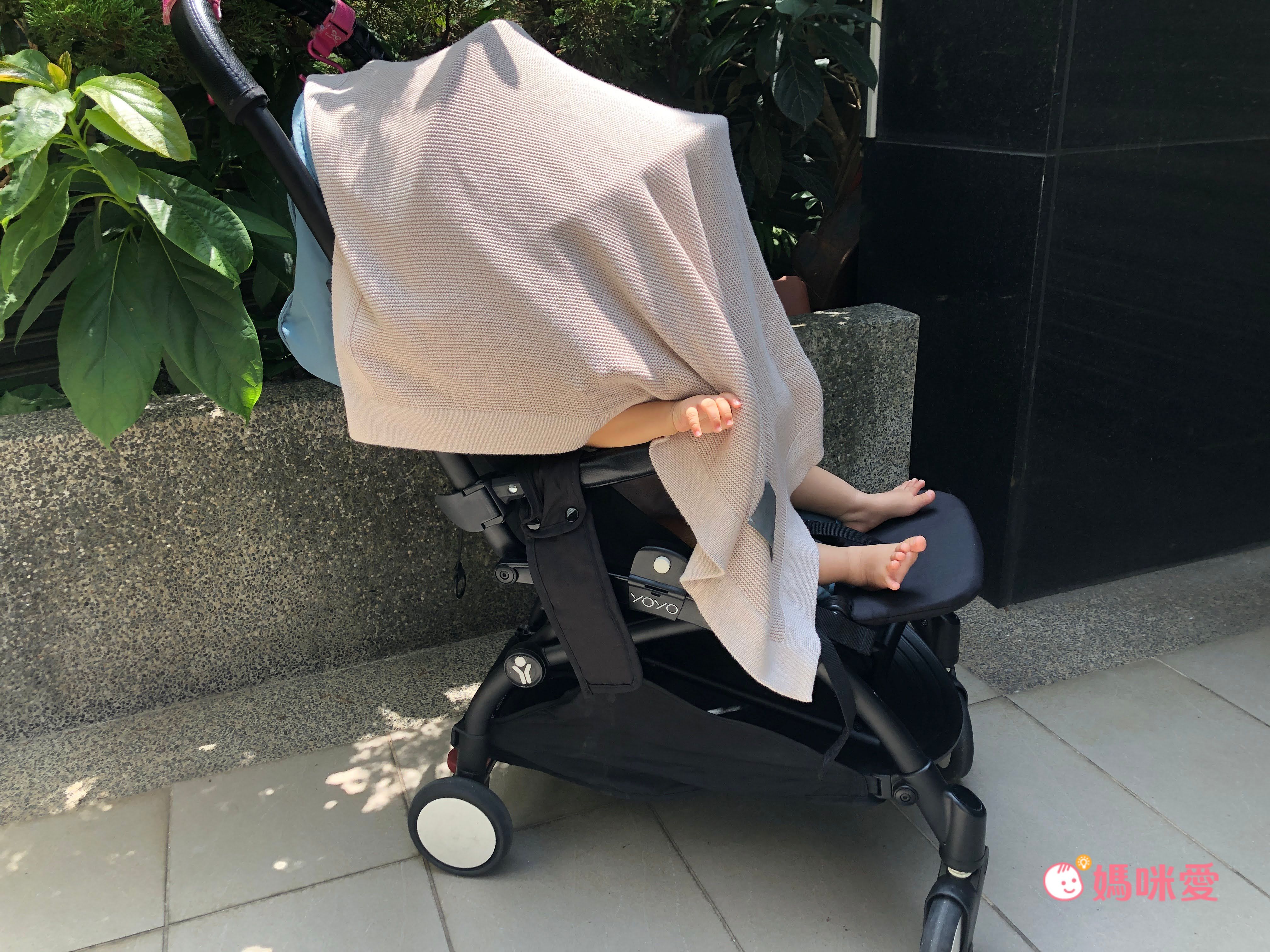 外出坐推車時,拿來當蓋毯,涼感又親膚不怕悶熱;因為有點厚度和彈性,用來對抗紫外線,遮陽效果很棒!
