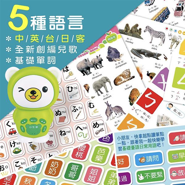 還有一點大加分的部分就是市面上唯一涵蓋中、英、日、台、客五種語言!符合108課綱多元文化素養。學會基礎台語詞彙,跟阿公阿嬤一起玩也能很開心♡ 雙面圖卡超豐富的,內容有數學、國學、音樂、故事、十萬個為什麼....等等!