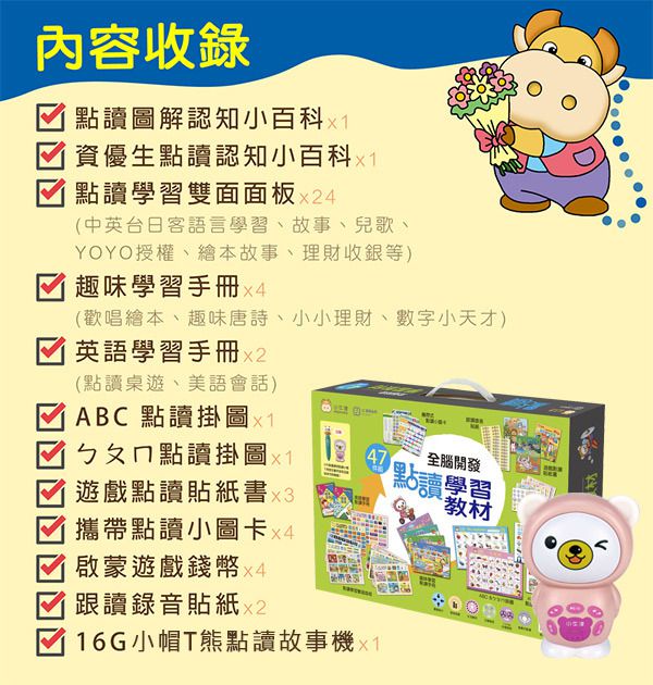 備註:【47件組全腦開發點讀大寶盒】可以直接通用遊台灣的帽T熊點讀筆哦!