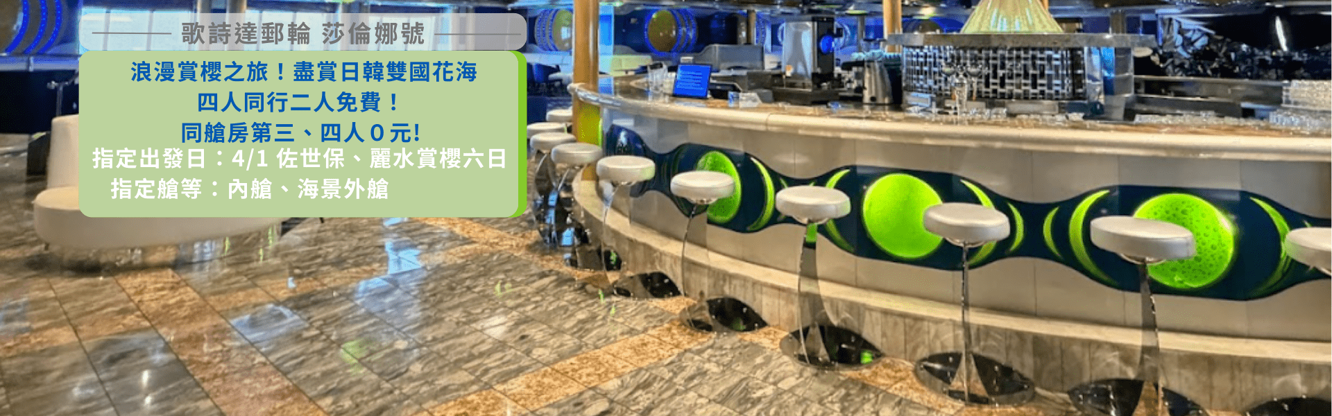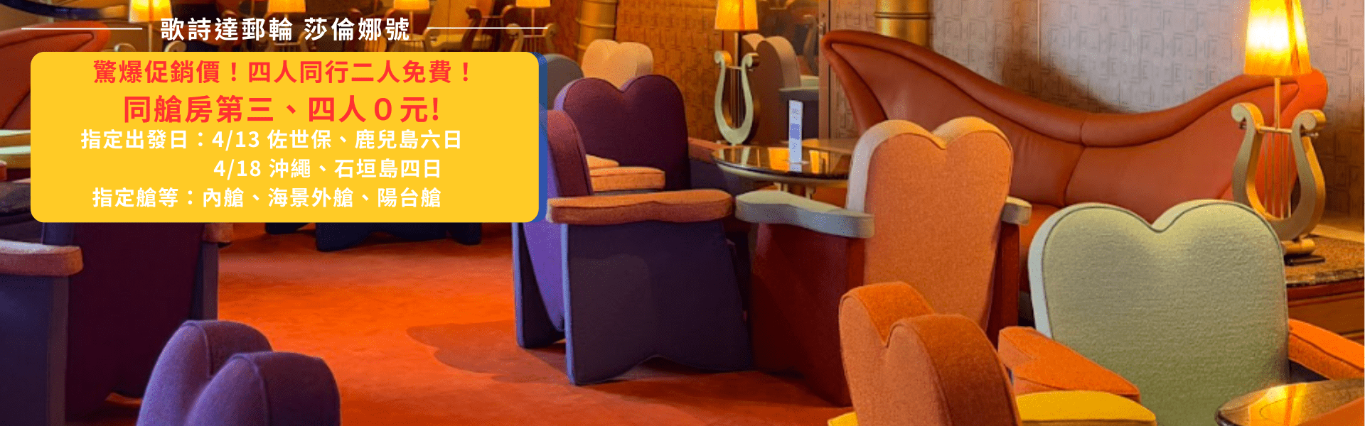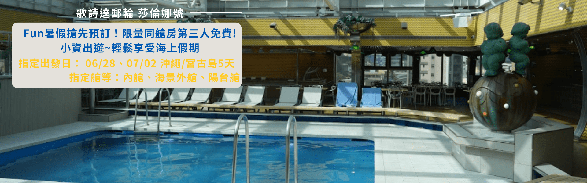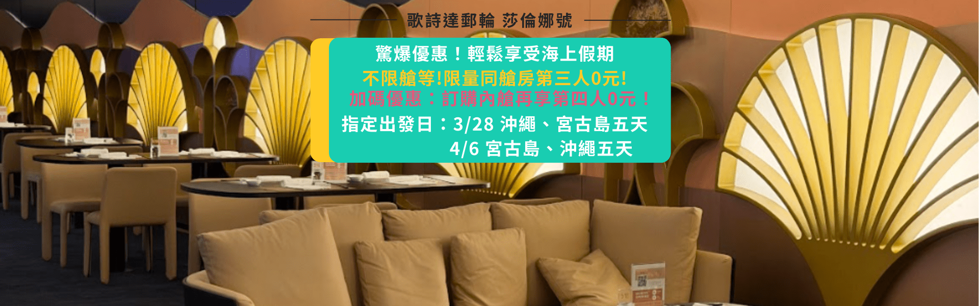 3. 根據郵輪公司的規定:在出發日懷孕滿24週的婦女及未滿6個月之嬰兒禁止登船;未滿 18 歲不得單獨報名參加航程;每房須至少有一名年滿 18 歲旅客入住。