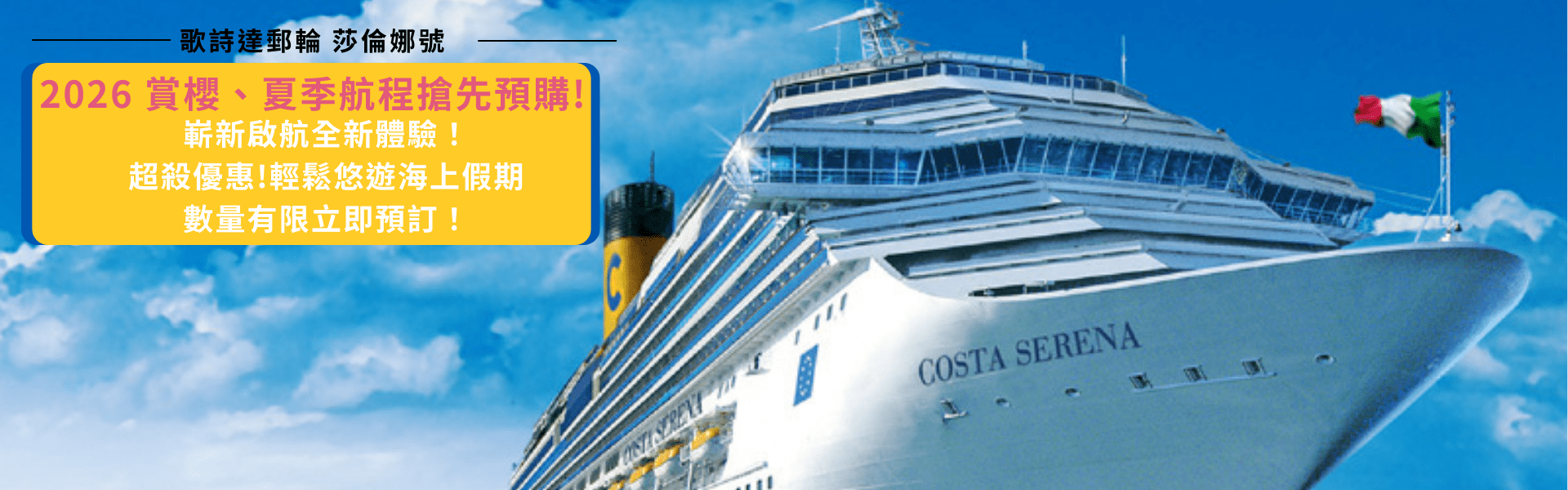 ※ 步驟2 至AsiaYo官網訂購「歌詩達郵輪莎倫娜號春季&夏季」之任一行程(限春季航線出發日期:2026/3/28-2026/4/21、夏季航線出發日期:2026/6/28-2026/8/23)