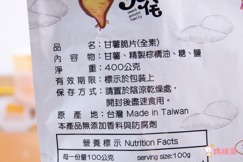 不過沒有清楚標示保存期限、沒有成分表,更沒有營養標示,偶爾媽媽自己吃是沒關係,小孩的話就完全不敢放行啊(抖)還好現在認識了【阿甘薯叔】這個在地品牌,他們家的甘薯脆片真的就三個字:薄、酥、脆!而且成分、製造日期清清楚楚,吃得到純粹的原味,自然也很安心的跟小孩一起分享!