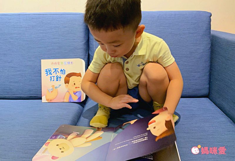 和媽媽共讀的時候,阿噹很浮誇的假裝自己是診間哭鬧的小baby;和姐姐共讀,姐姐也和阿噹分享說打針只是叮一下而已,不會很痛,很努力的在幫弟弟打強心針