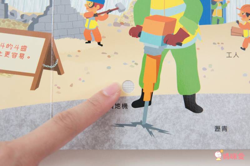 而且真實生活中的工地因為有危險性,大部分都有工程圍籬遮擋住視線,對工地好奇的小朋友們就可以從書裡來一窺究竟囉!bonbon是小女生也忍不住好奇拿起來翻閱