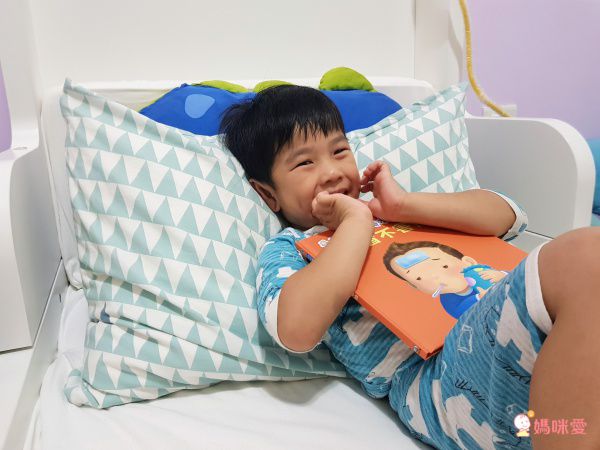 阿噹讀起這本書可說是一千一百個認同,所以這本書...最適合拿來睡前閱讀了! 看阿噹的燦笑就知道他是真的不想睡阿! 不過故事講完,也和阿噹約定好時間到了要乖乖睡覺,明天才可以講更多更精采的故事,就和主角丹丹一樣乖乖上床進入夢鄉了...