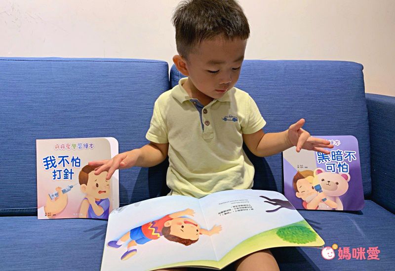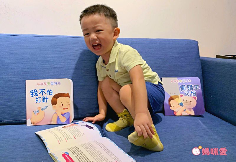 今天從跌倒沒關係、我還不想睡、黑暗不可怕、哈囉小雞雞、我不怕打針這5本最有共鳴度的繪本來做開箱,所以其實噹媽不用多做解釋,他就可以很自然地融入繪本情節。