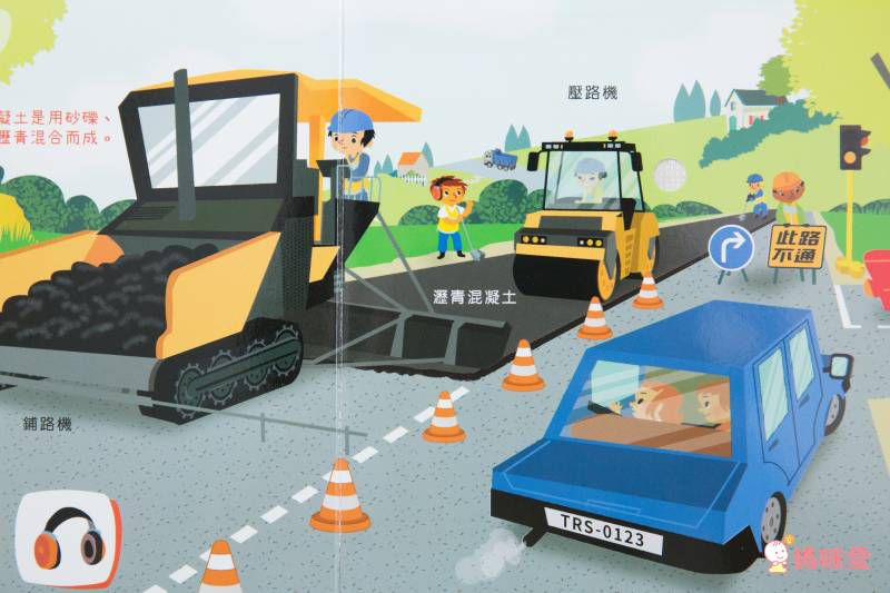最貼心的還有會在車子及人物旁邊註明,也有功能小說明,讓很容易詞窮的爸爸媽媽們可以簡單就上手跟寶寶介紹圖片裡正在發生的事情!