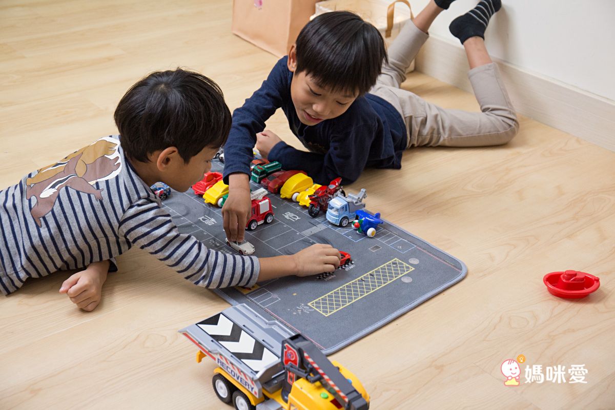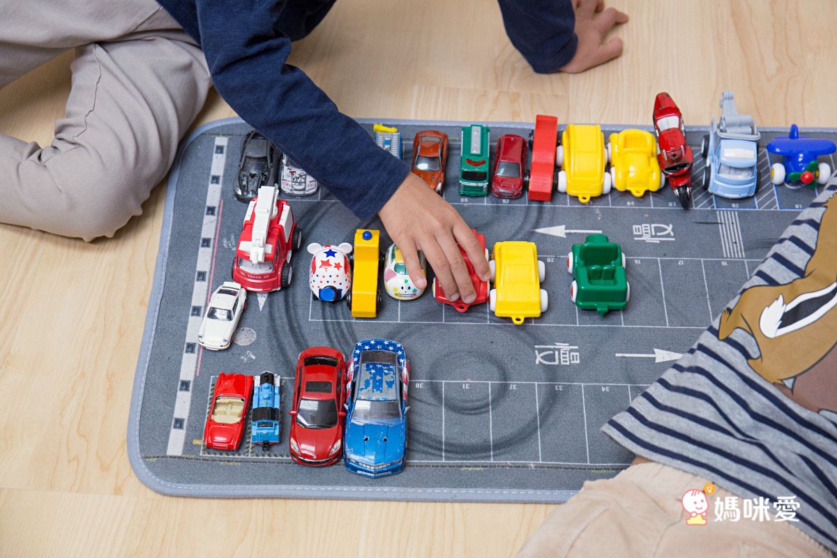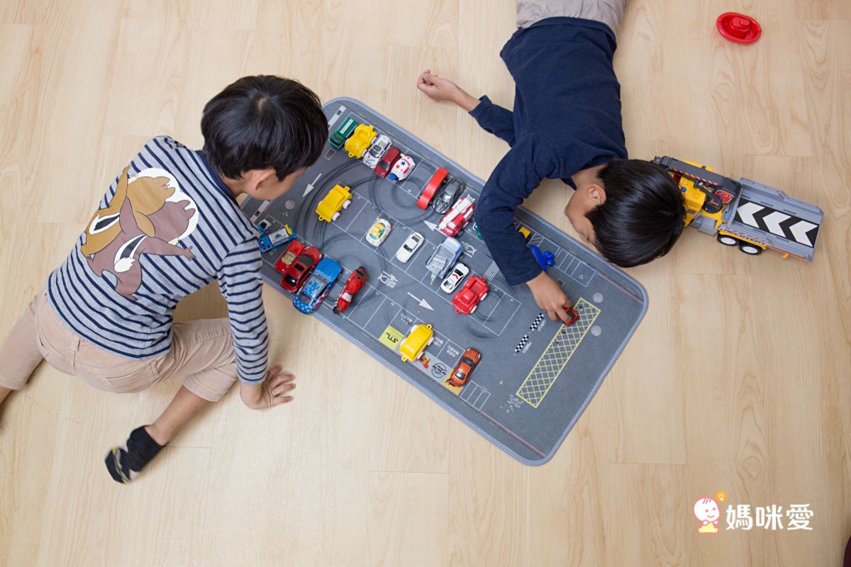 除了當車車收納外,也能作為兒童遊戲房的腳踏墊、遊戲墊,就不會坐在冷冰冰的地板上囉~