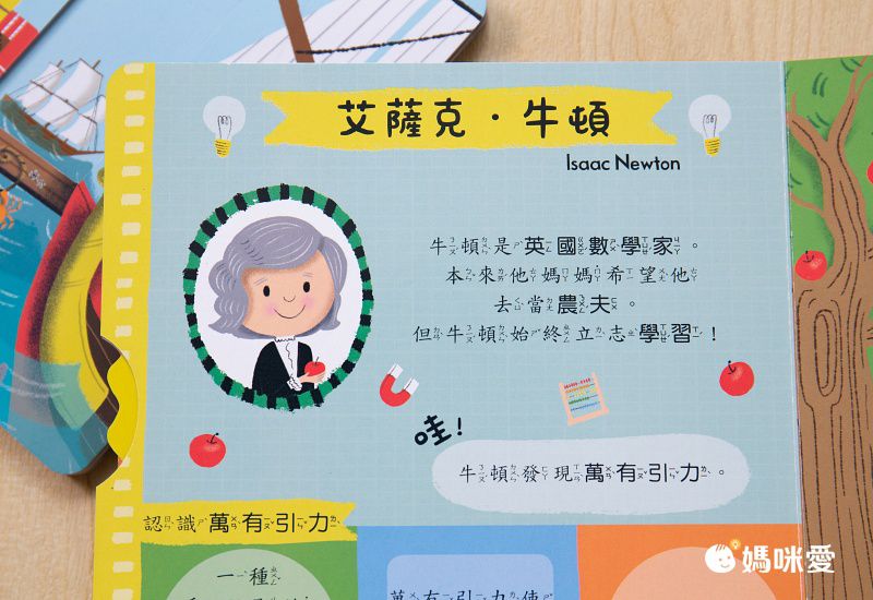 英國Campbell推拉書的畫風逗趣可愛,加上輕鬆的⽂字⼝吻,把嚴肅的科學專有名詞&藝術類的各種畫風知識傳遞給寶⾙們,你看,是可愛版的牛頓呢~
