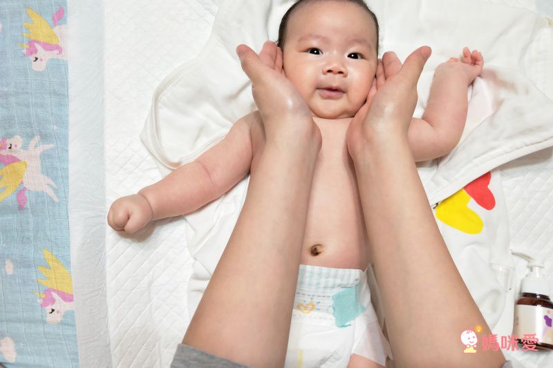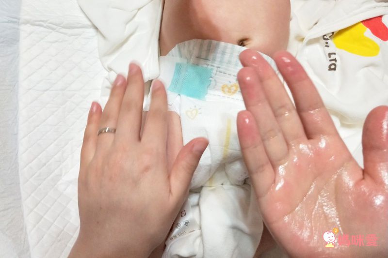按壓適量在手掌心搓熱,就可以幫寶寶按摩囉!如果能配上輕柔的音樂就更棒啦