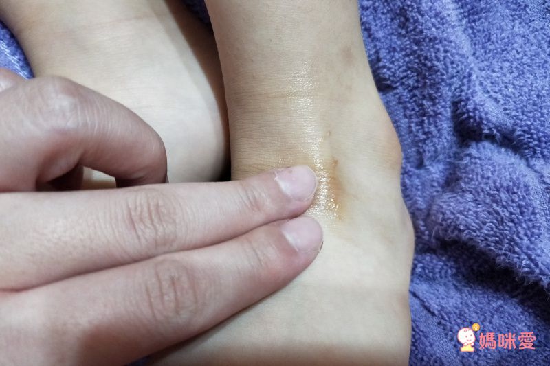 直接塗抹在寶寶的腳上,慢慢輕柔地按摩腿腿的小肌肉,幫寶貝舒緩肌肉,真的可以讓她比較放鬆。而且肌膚接觸,讓大人小孩的感情更加升溫,讓寶貝更能擁有安全感