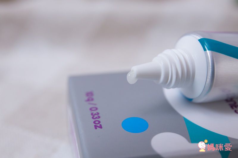 擠出來感覺像眼藥膏的那種感覺,沒有任何香味,手背上塗抹開來覺得微微的滋潤感,不會黏,跟羊脂膏黏稠的質地很不同。一般情況下,不需要擦拭掉就能哺乳,成分安全天然,寶寶不小心吃進去也不擔心