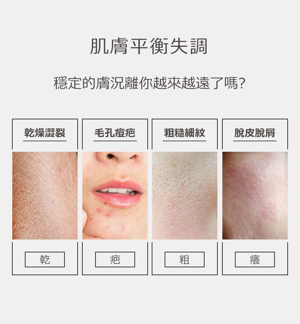 不添加增稠劑魚目混珠,每一滴都是真實有效的成分!裡頭有五種主要成分來幫助改善肌膚狀況