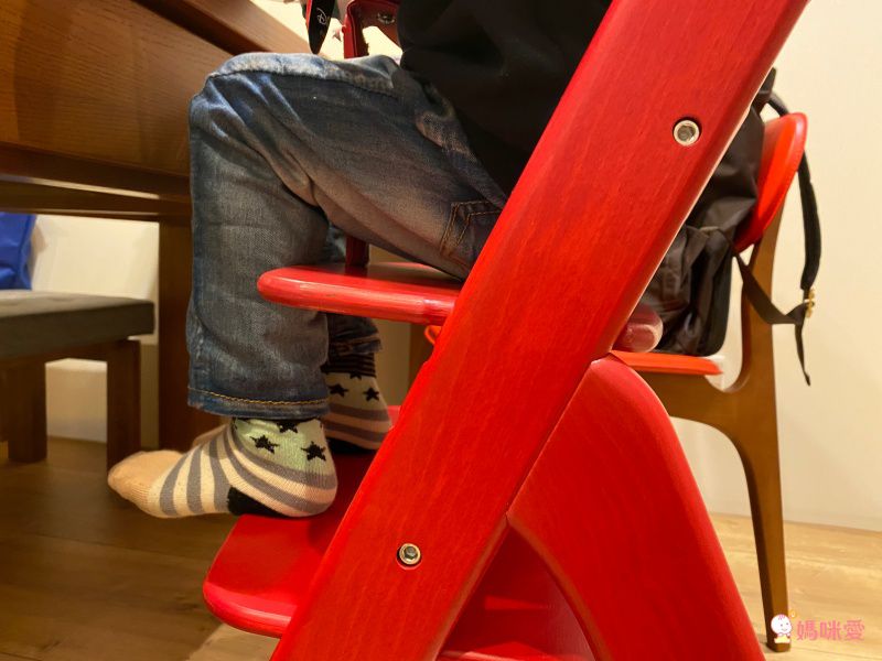 貼心的腳踏板設計,讓寶貝穩穩地坐好在椅子上,很多低價的塑膠餐椅,並沒有腳踏的設計,每當看小孩的雙腳在那裡晃啊晃,大大降低舒適度