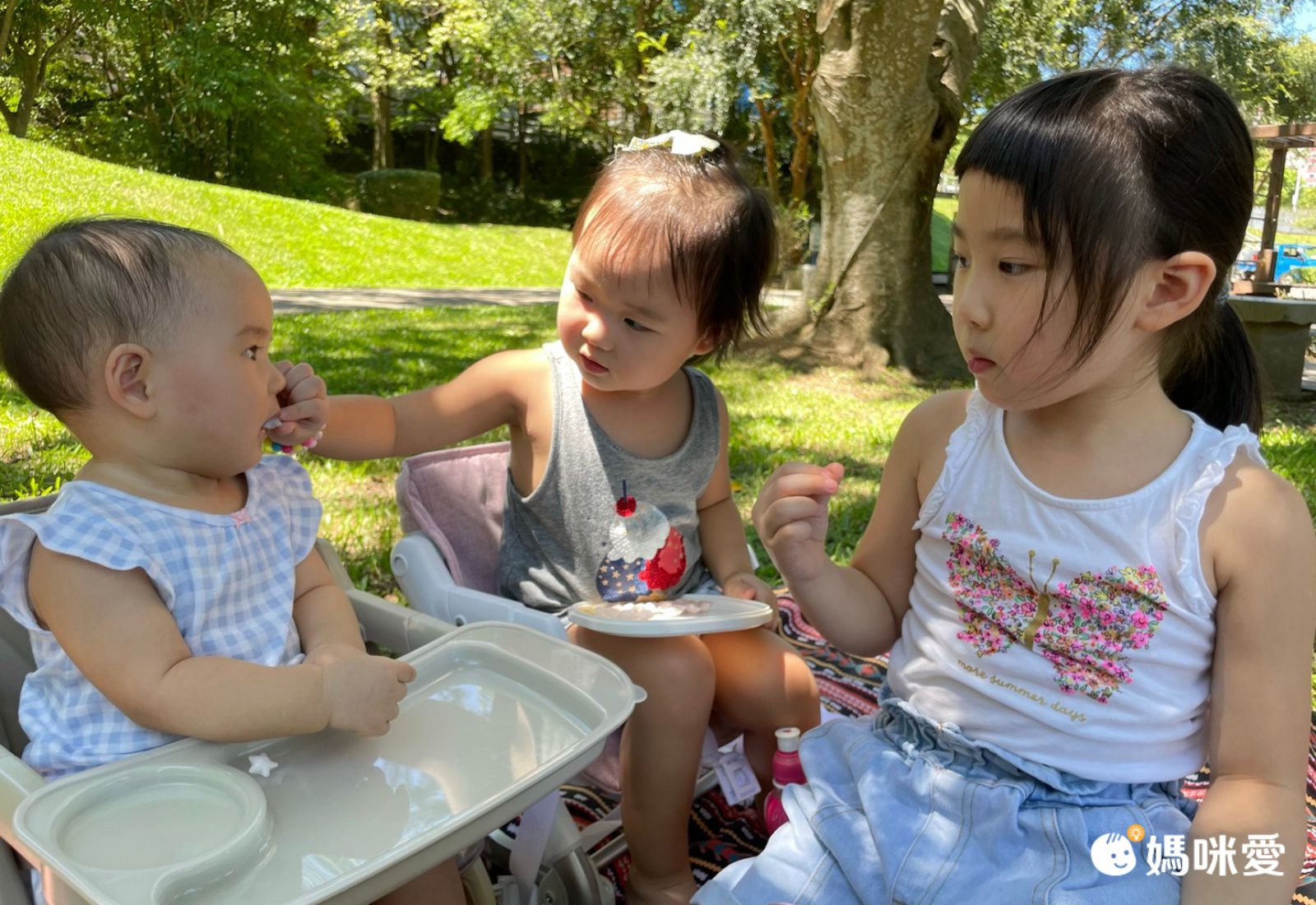 而且Z型骨架真的很穩固,帶孩子野餐放在地上也不用擔心重心不穩會翻倒~二小姐咪寶也坐得穩穩的,咪寶已經很會吃飯媽咪就把餐盤拆掉讓他更好活動~看孩子們用餐椅和樂融融的畫面,這景象太美啦~