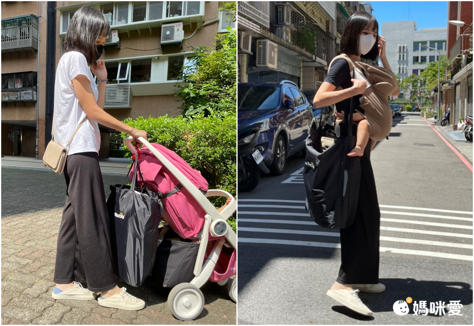 而且重量真的很輕,平常都搭捷運居多的小白媽咪,背著9公斤的三小姐再提著他也不是問題喔!或者掛在推車掛鉤上也很方便~