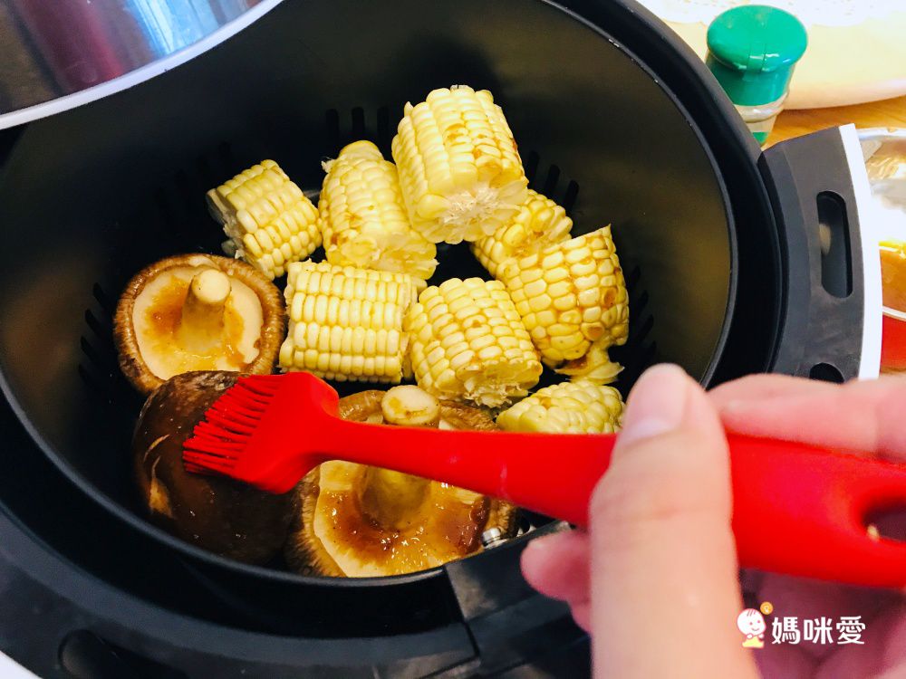 蔬菜也是可以用氣炸鍋來料理的喔~出來的玉米和香菇都不會過乾而且更顯甜味