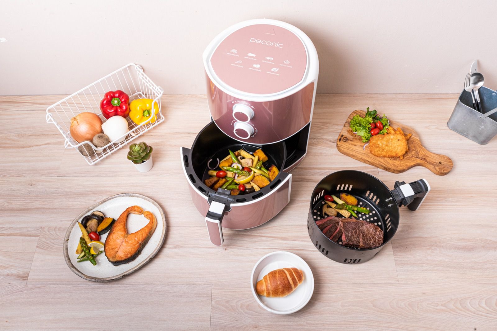 其實氣炸鍋的原理都是大同小異,差異就在運作時候熱對流好不好!日本 Pecobono 氣炸鍋 特別在側邊也做了開孔增加對流效果,炸出來的東西平均又酥脆唷~