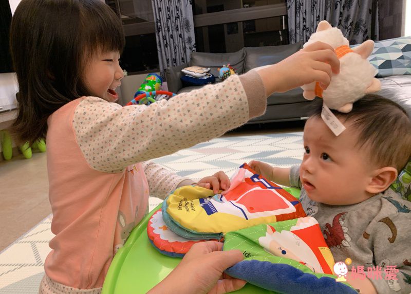 回想第一胎當新手媽媽的時候,在柑仔會爬會走前,整天在家都不知道要陪她做什麼,除了天氣好推她出門散步外,下雨天就只能跟她在家大眼瞪小眼?跟她玩玩具又怕太硬太尖銳會傷到,唸故事書也不知道她有沒有聽懂...有時還唸到自己都快睡著了~直到生第二胎才知道有「布書」這玩意兒~