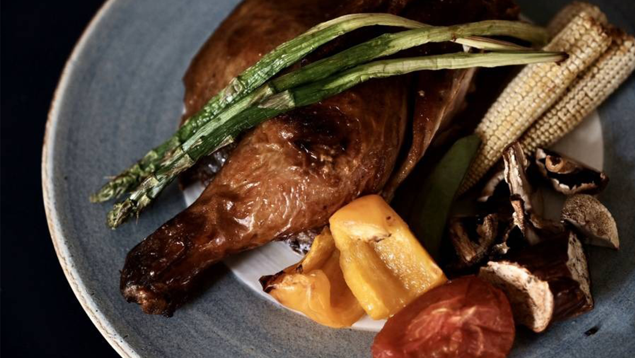 天啊是整隻烤雞欸!不誇張整整有一公斤重,嚴選鮮嫩紅羽小土雞,佐以數十種特選香草與海鹽細火烘烤,層層香草風味與鮮甜雞汁揉合出絕妙香氣,搭配馬鈴薯、蘿蔔、洋蔥等喜愛的蔬菜一起煎烤,待蔬菜吸飽滿滿醇厚雞汁,吼看到這都餓了啦!