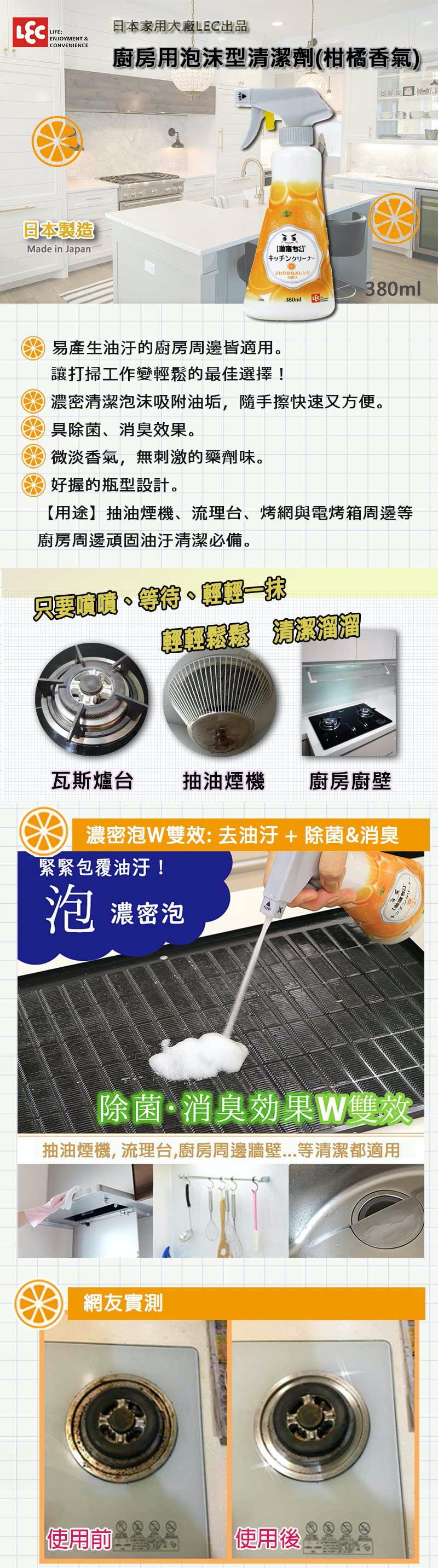 廚房油污別擔心!LEC廚房用泡沫清潔劑無論是瓦斯爐、抽油煙機烤網都能讓媽咪輕鬆處理掉!