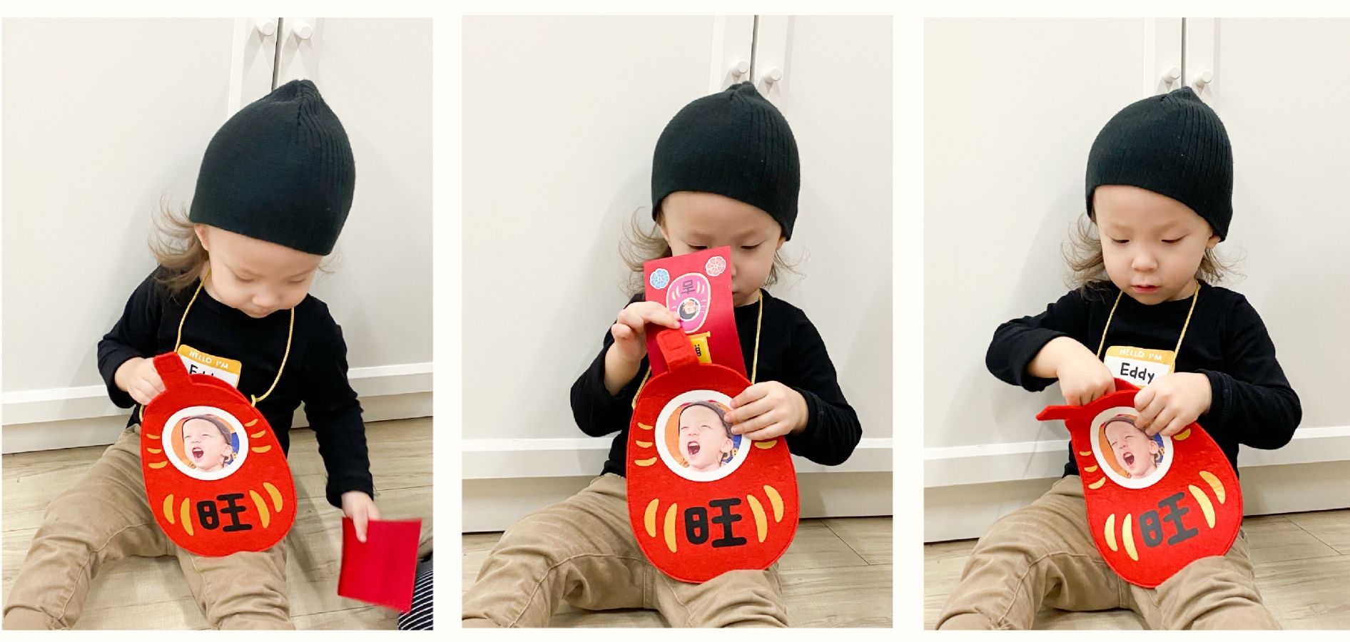 與孩子一起動手DIY,貼出獨一無二的紅包袋,還可以作為紀錄,保存孩子每年不同的模樣,當作爸媽、爺爺奶奶的回憶。
