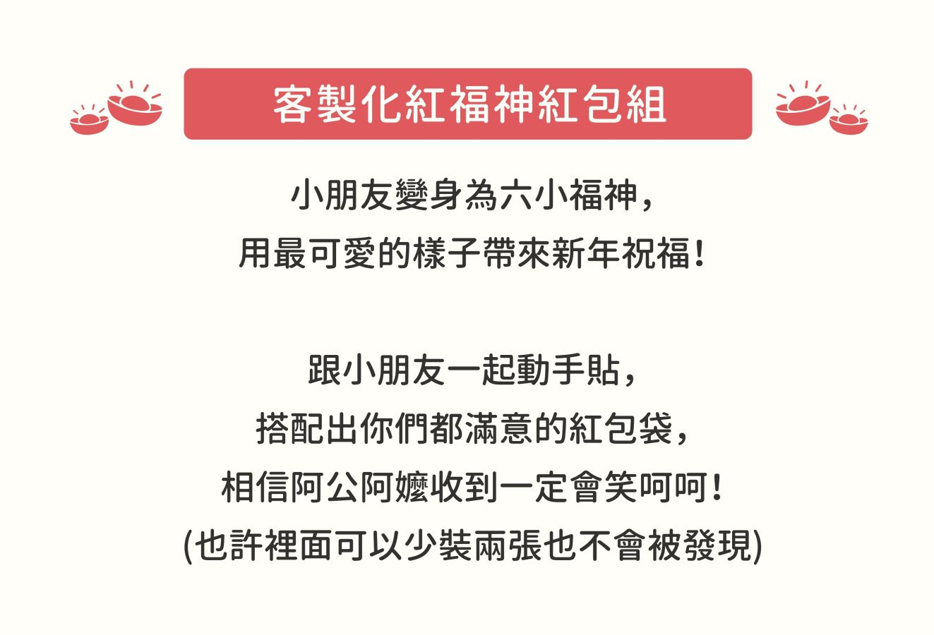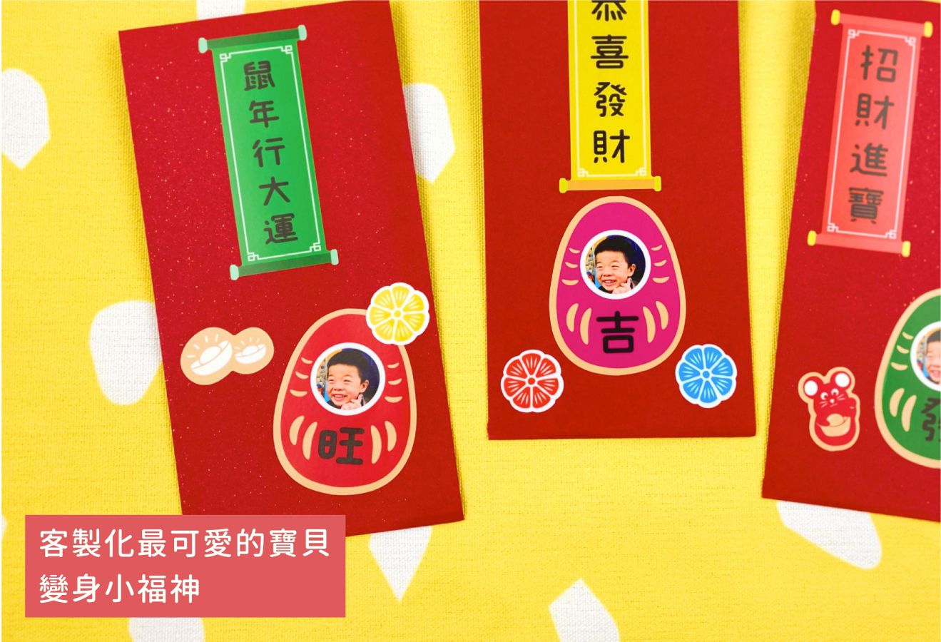 每當過年寶貝們就屬最期待發紅包的時刻(大人們覺得痛心XD)無論是自己珍藏還是包給長輩,有了寶貝可愛的臉龐化身為小幅神,效果一定大加分(好媳婦快買起來)