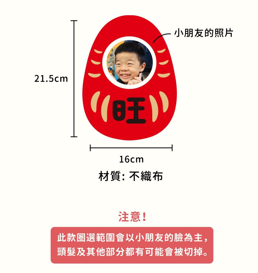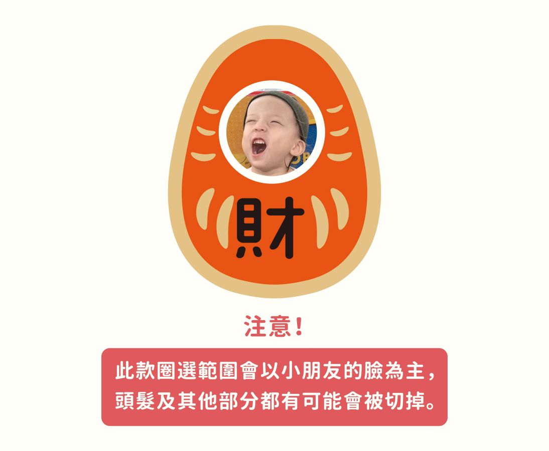 還請媽咪挑選清晰的大頭照,製作裁切會以臉為主,頭髮、髮飾、帽子等配件可能會視情況被切掉喔!